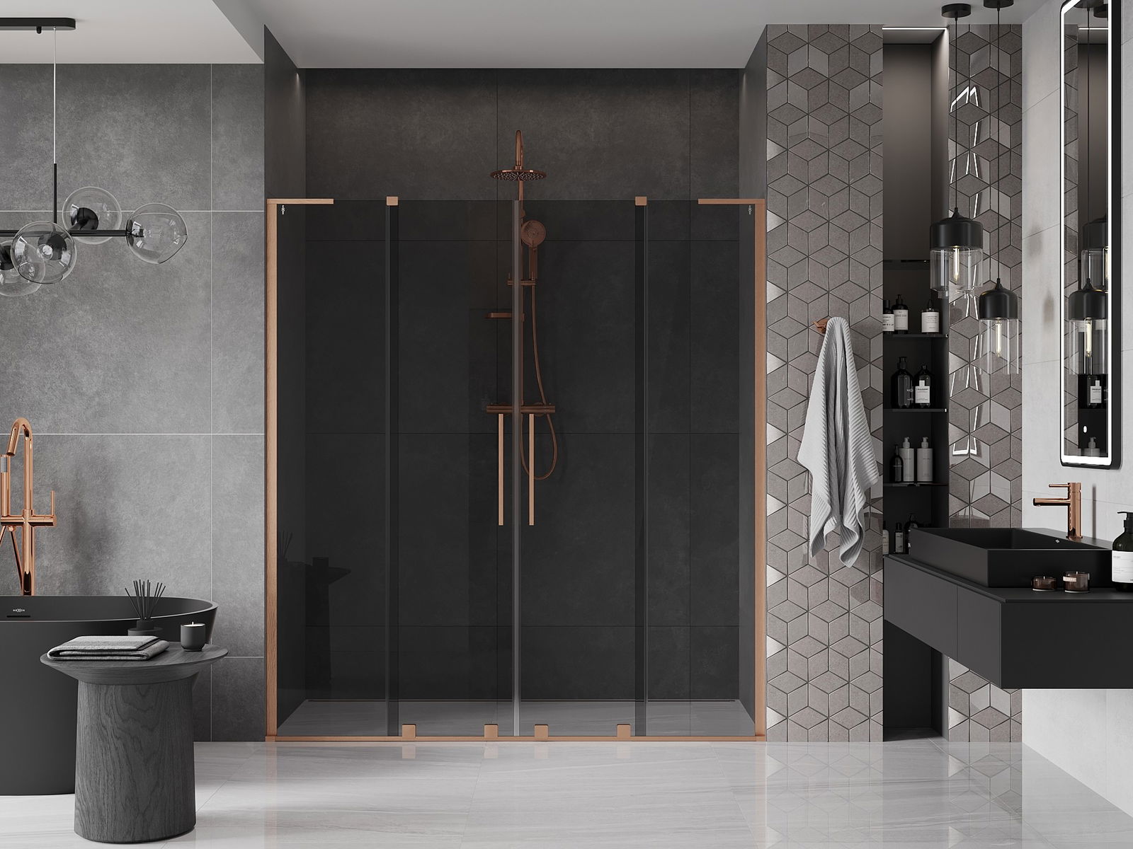 Mexen Velar L Duo posuvné sprchové dveře 170 cm, grafit, kartáčovaná měď - 871-170-003-42-65