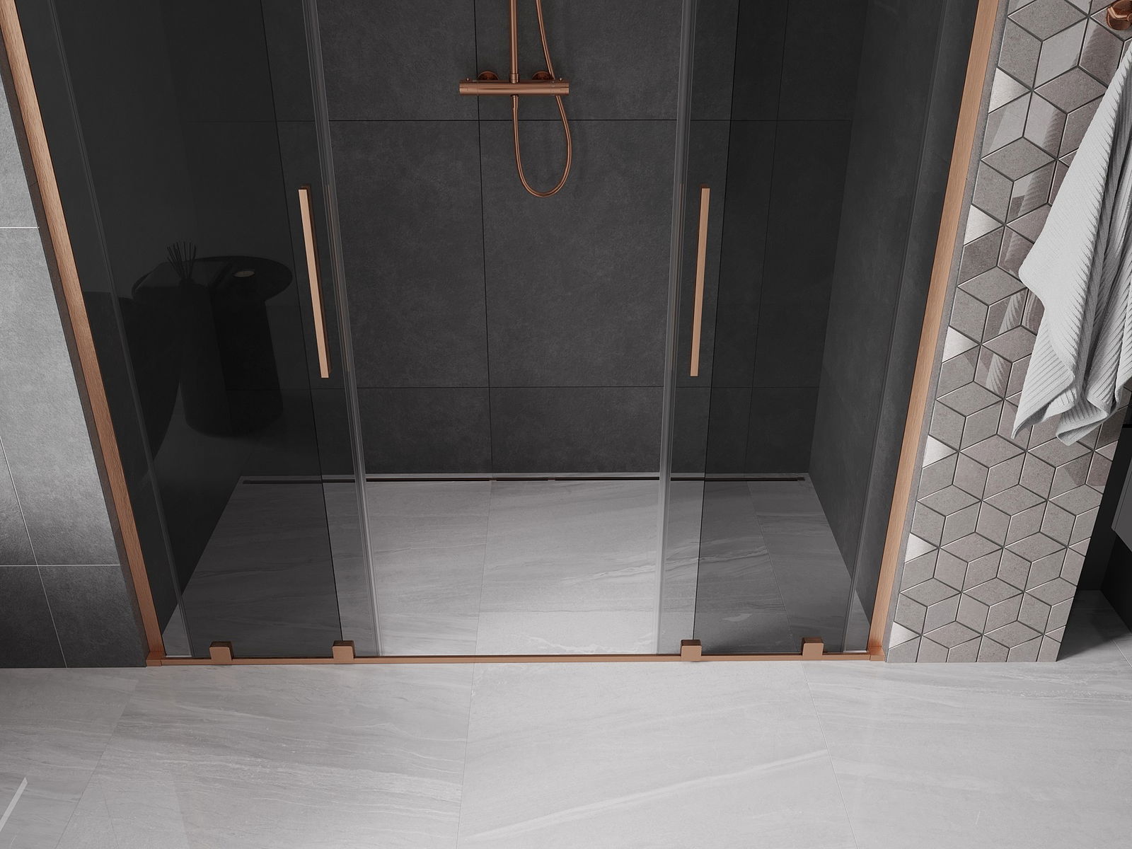 Mexen Velar L Duo posuvné sprchové dveře 180 cm, grafit, kartáčovaná měď - 871-180-003-42-65