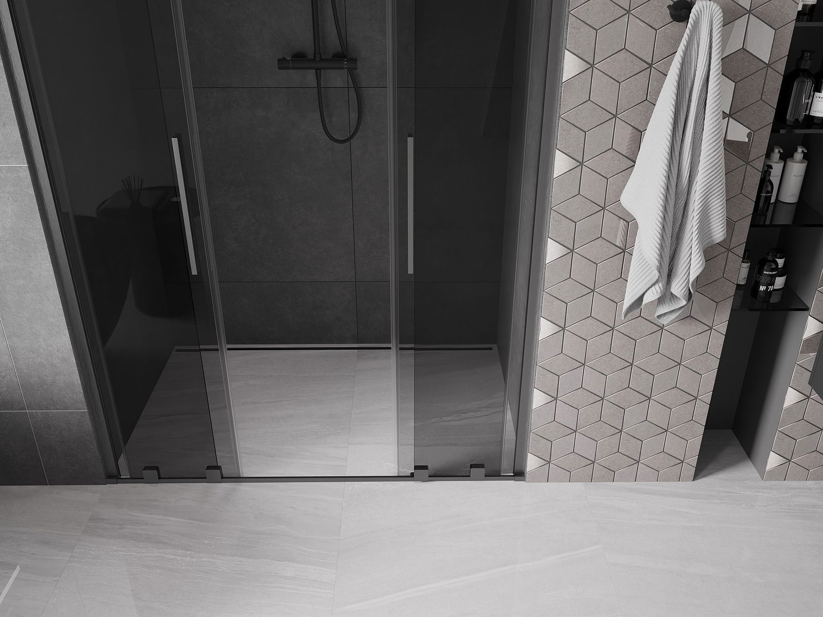 Mexen Velar L Duo posuvné sprchové dveře 160 cm, grafit, kartáčovaná střelná šedá - 871-160-003-42-66