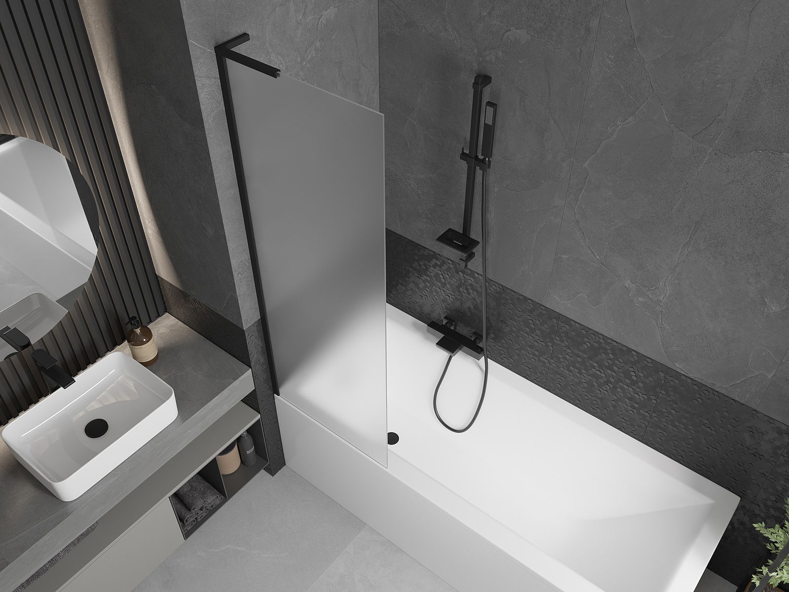 Účinná ochrana před rozléváním vody během koupání. Paraván má těsnění, která se ideálně přizpůsobují skleněné desce a okraji vany. Funkční řešení zajišťující bezpečnost a snadnou údržbu čistoty.