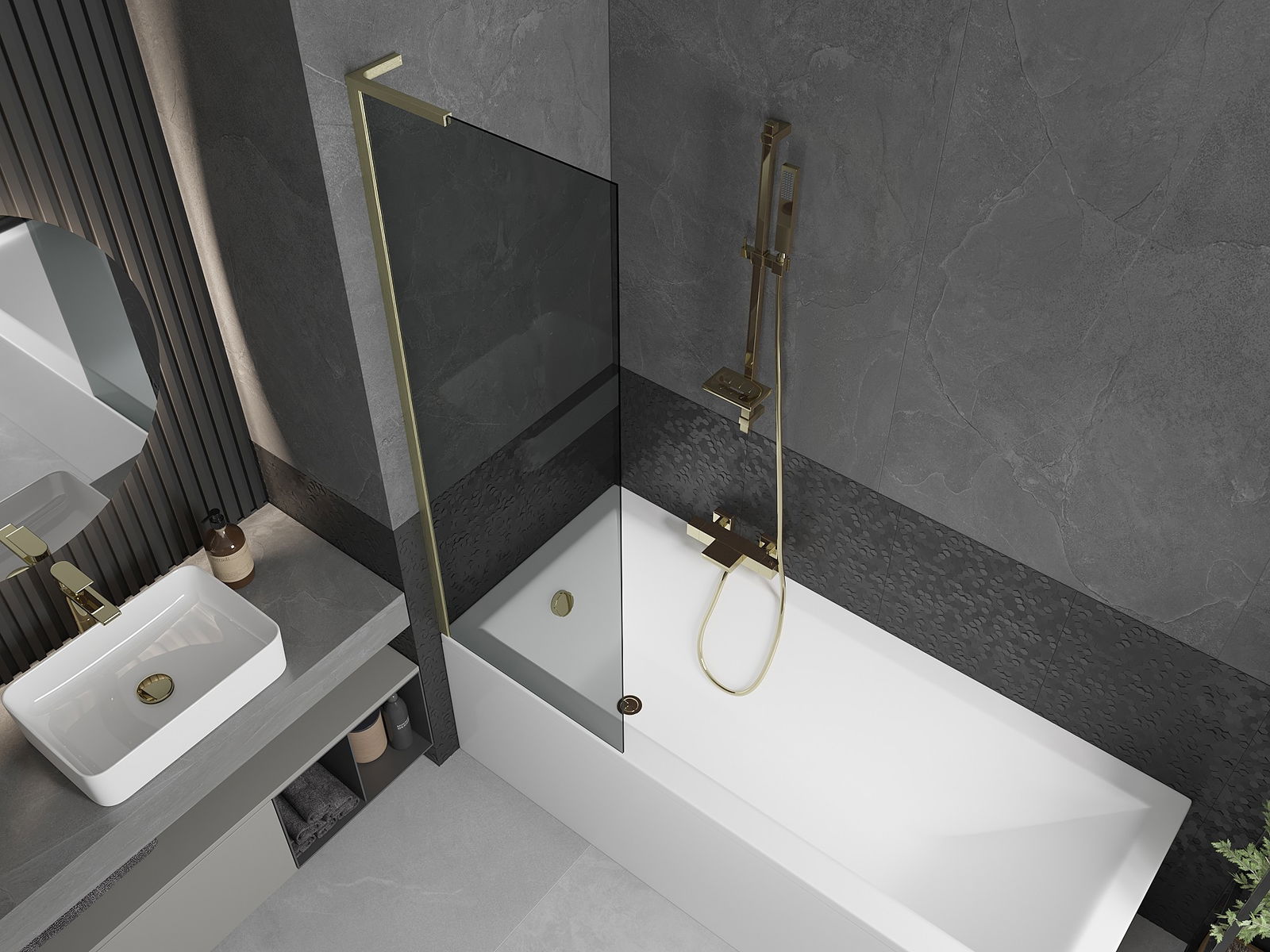 Mexen Next L vanová zástěna 1-křídlová 60 x 150 cm, grafitová, zlatá kartáčovaná - 895-060-000-03-40-55