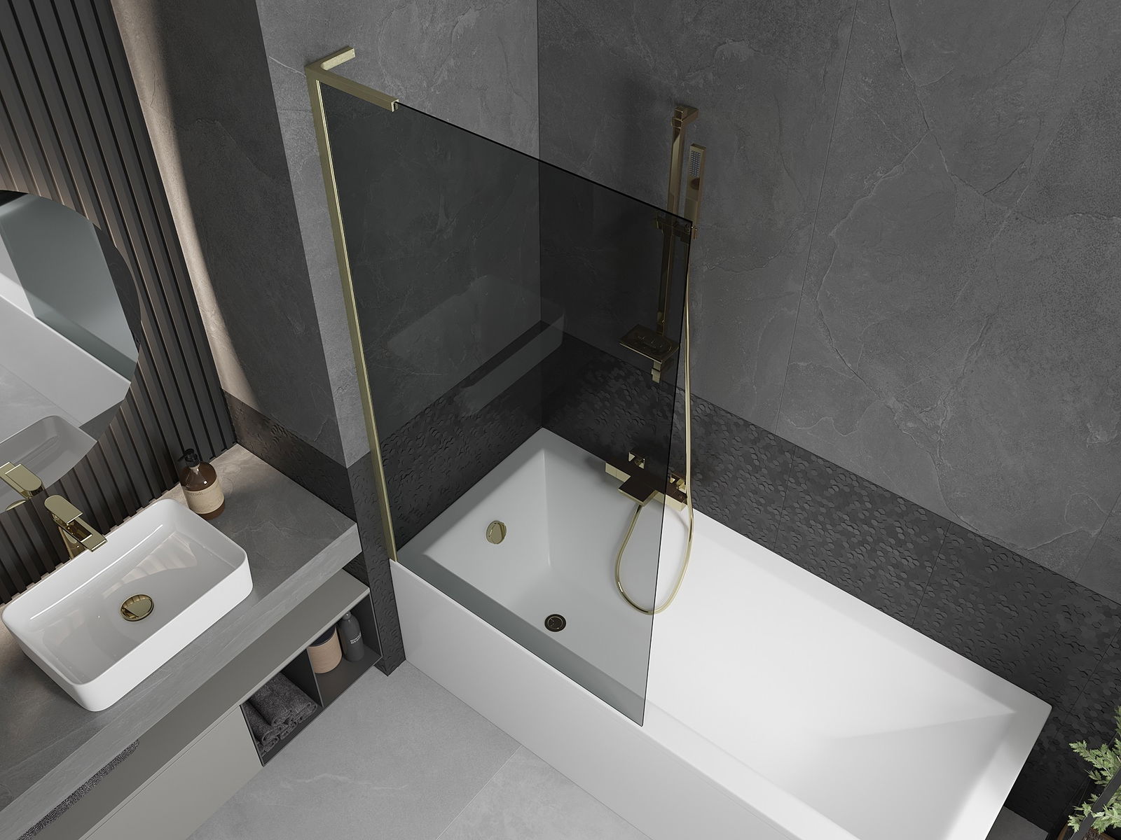 Mexen Next L vanová zástěna 1-křídlová 90 x 150 cm, grafit, zlatý kartáčovaný - 895-090-000-03-40-55