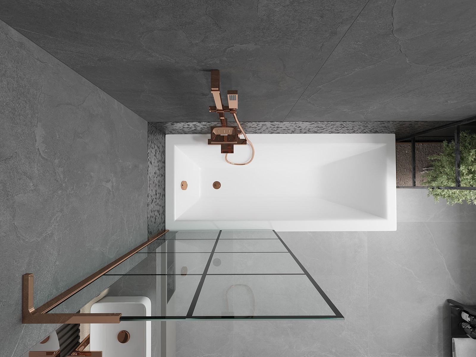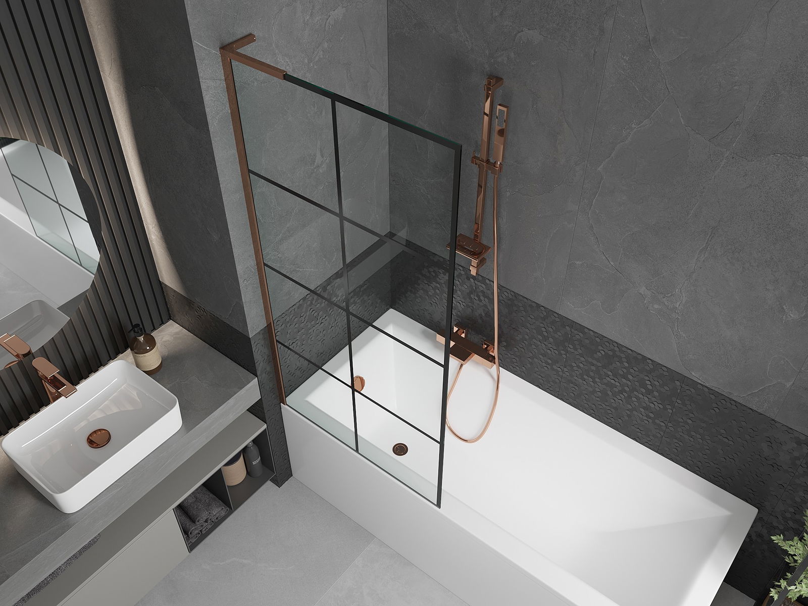 Mexen Next L vanová zábrana 1-křídlová 80 x 150 cm, černá mřížka, růžové zlato - 895-080-000-03-77-60