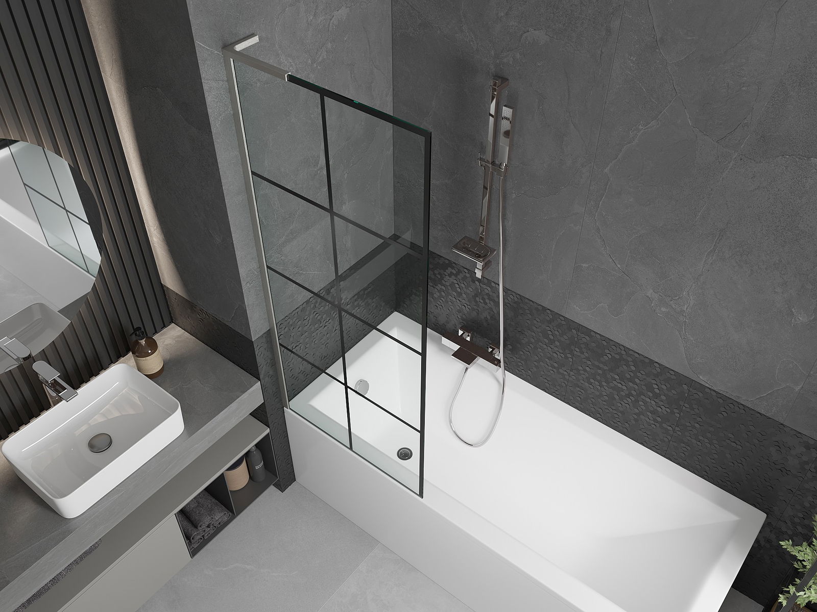 Účinná ochrana před rozléváním vody během koupání. Paraván má těsnění, která se ideálně přizpůsobují skleněné desce a okraji vany. Funkční řešení zajišťující bezpečnost a snadnou údržbu čistoty.