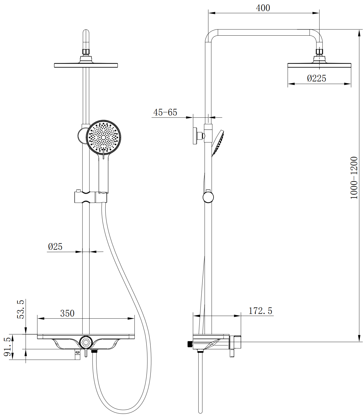 Velikost hlavové sprchy: ø225 mm