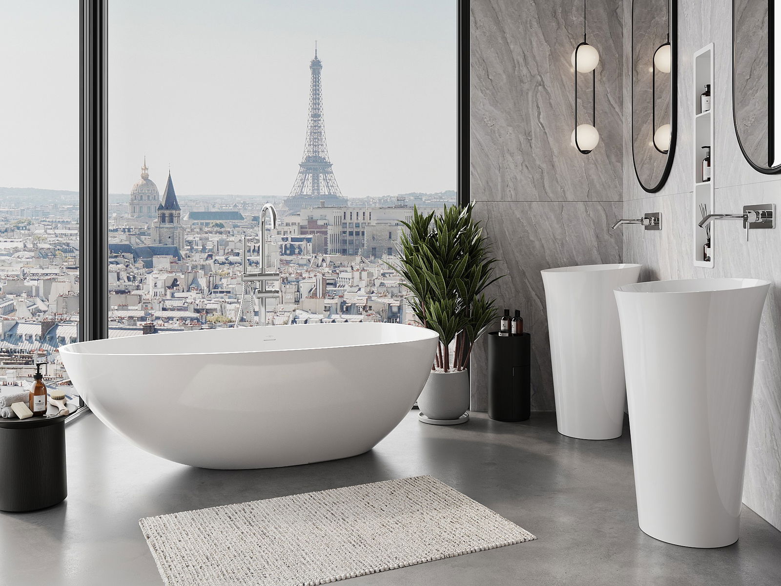 Mexen Imola volně stojící vana z konglomerátu 170 x 88 cm, bílý lesk - 57281708510