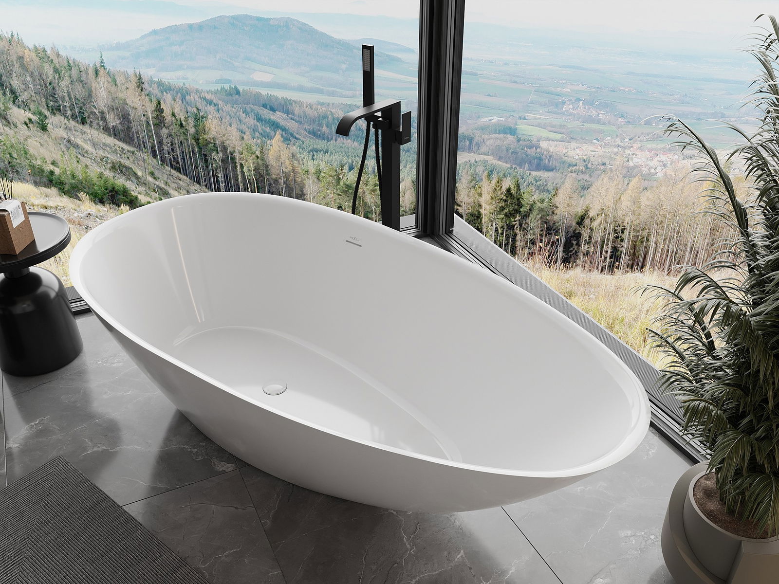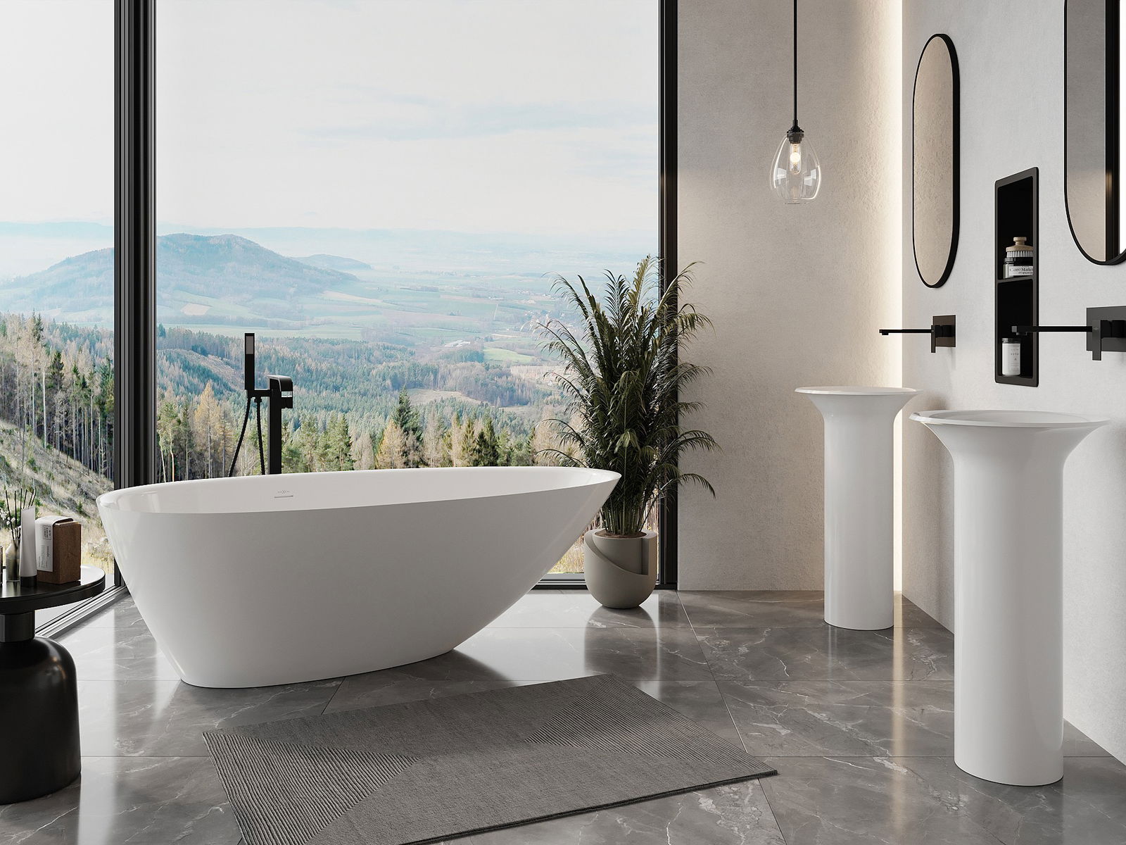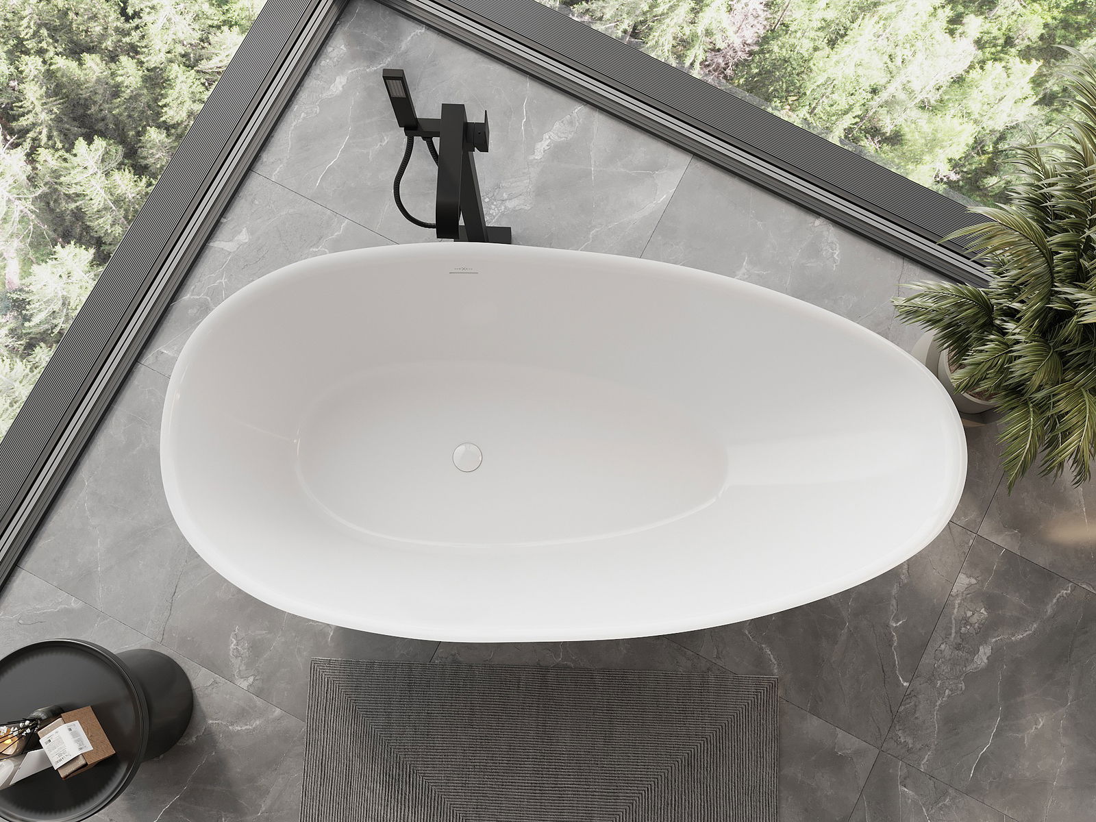 Mexen Milano volně stojící vana z konglomerátu 150 x 82 cm, bílý lesk - 57301508510