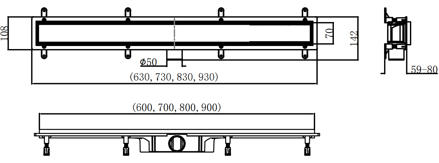 Odpady jsou vybaveny nastavitelnými nožičkami, které umožňují přizpůsobit vhodnou výšku odpadu a vyrovnání na nerovném povrchu. Tímto způsobem je odpad ještě lépe přizpůsoben podmínkám dané koupelny.