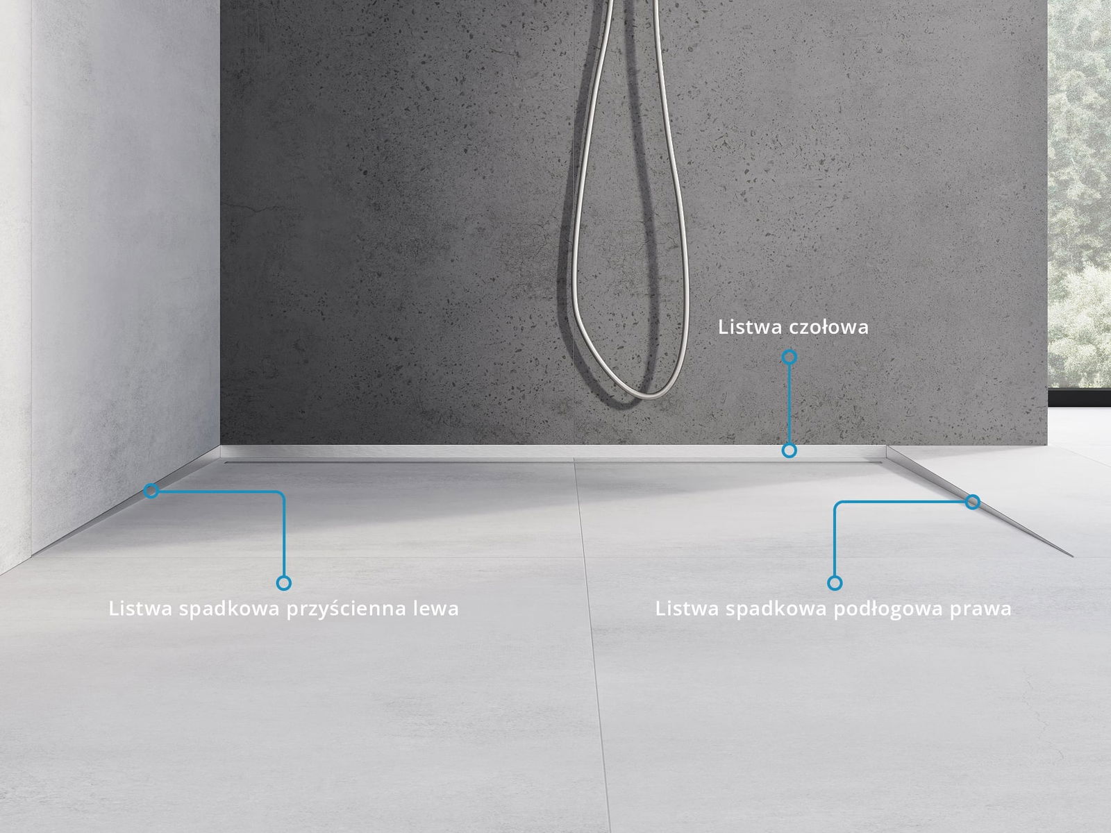 Použití spádového lišty eliminuje nutnost vytváření tzv. obálky z dlaždic, což rozhodně zjednodušuje proces montáže lineárního odtoku. Takové řešení umožňuje vyhnout se dodatečné, časově náročné práci, kterou je vytváření obálky, která by normálně sloužila k dosažení správného spádu v podlaze.