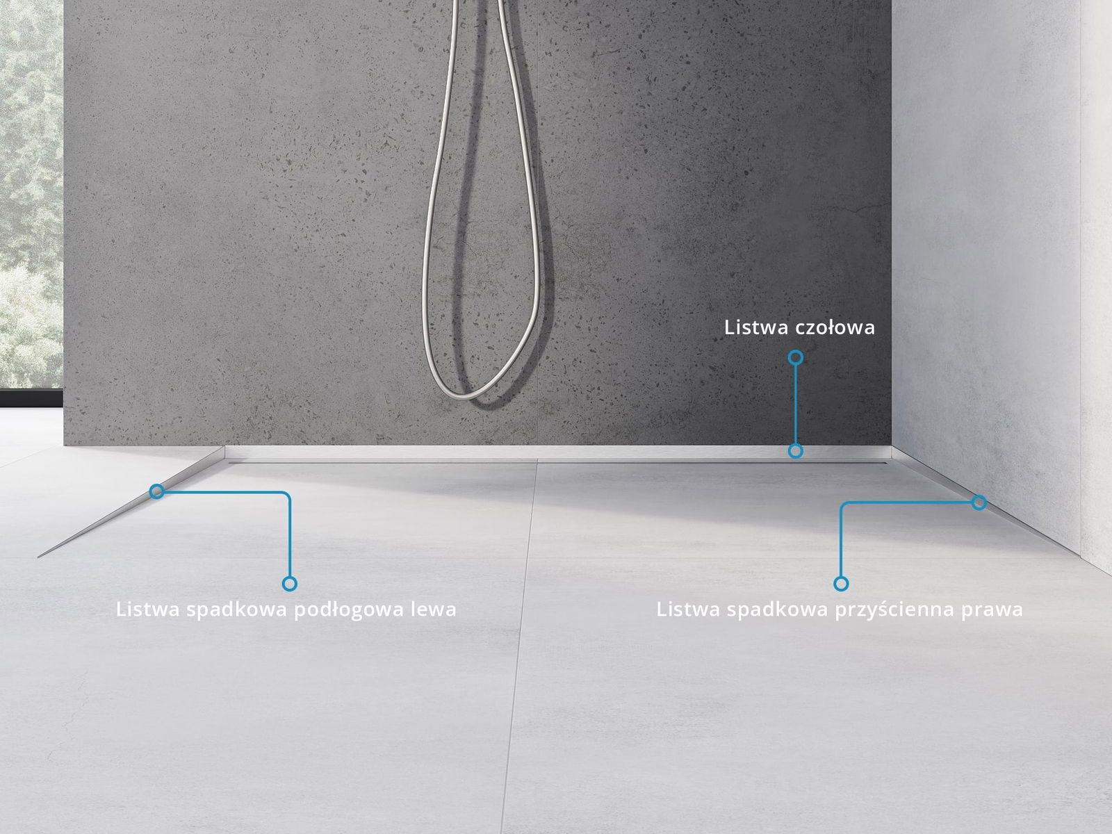 Použití spádového lišty eliminuje nutnost vytváření tzv. obálky z dlaždic, což rozhodně zjednodušuje proces montáže lineárního odtoku. Takové řešení umožňuje vyhnout se dodatečné, časově náročné práci, kterou je vytváření obálky, která by normálně sloužila k dosažení správného spádu v podlaze.