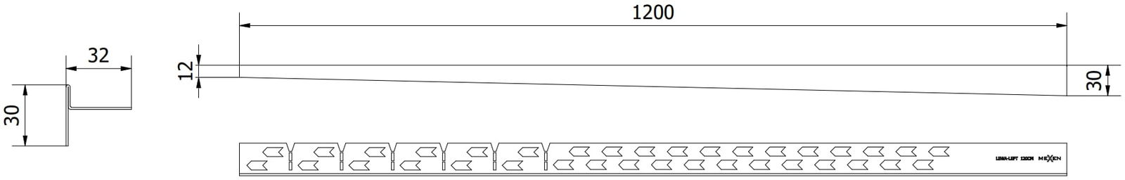 Boční hrana lišty zajišťuje jednostranný spád k liniovému odpadu bez nutnosti vytváření tzv. obálky