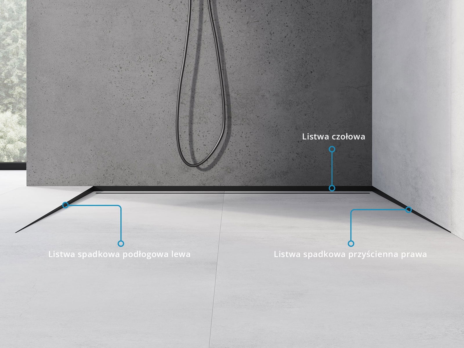 Použití spádového lišty eliminuje nutnost vytváření tzv. obálky z dlaždic, což rozhodně zjednodušuje proces montáže lineárního odtoku. Takové řešení umožňuje vyhnout se dodatečné, časově náročné práci, kterou je vytváření obálky, která by normálně sloužila k dosažení správného spádu v podlaze.