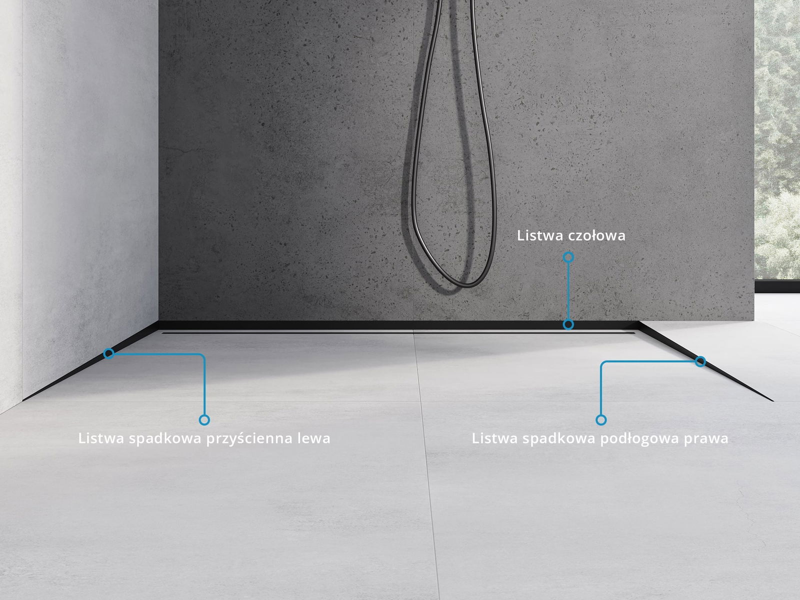 Použití spádového lišty eliminuje nutnost vytváření tzv. obálky z dlaždic, což rozhodně zjednodušuje proces montáže lineárního odtoku. Takové řešení umožňuje vyhnout se dodatečné, časově náročné práci, kterou je vytváření obálky, která by normálně sloužila k dosažení správného spádu v podlaze.