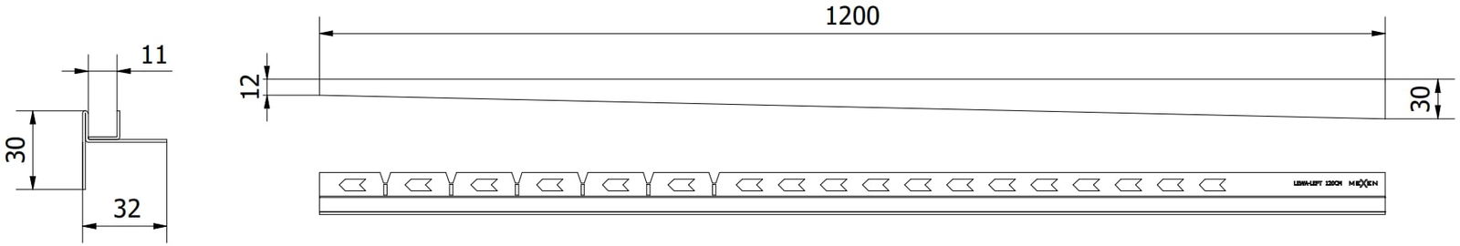 Boční hrana profilu nutí jednostranný spád k lineárnímu odtoku bez potřeby tzv. obálky