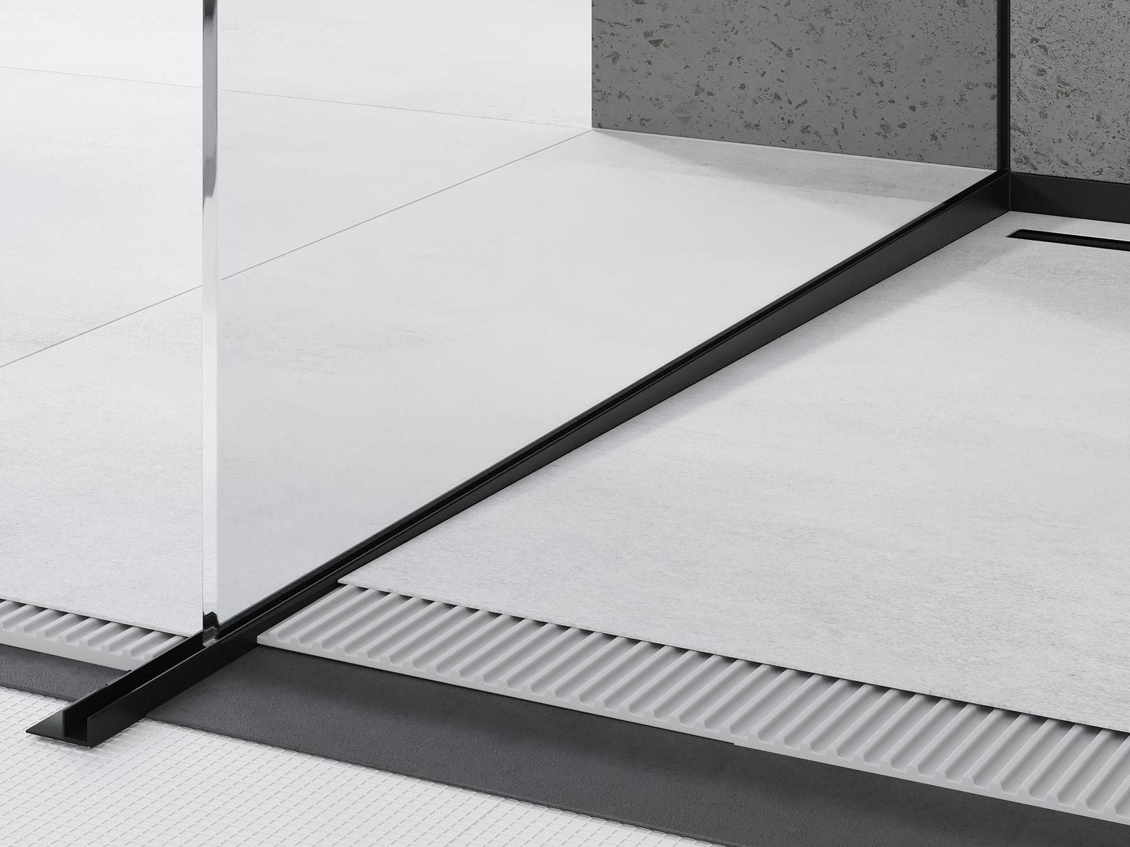 Lišta obsahuje místo pro montáž sprchové stěny, což nejen usnadňuje proces instalace, ale také umožňuje zakrytí zakončení pomocí silikonu