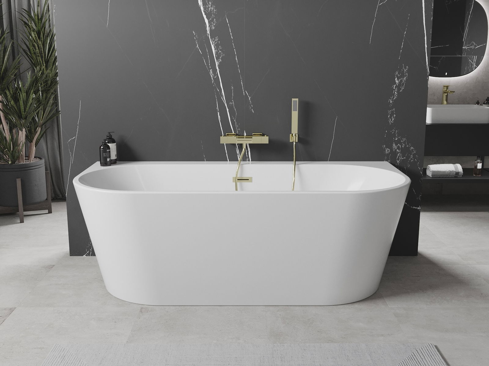 Vana na jedné straně má široký okraj, který tvoří praktickou polici. Umožňuje pohodlné umístění mýdla, kosmetiky nebo jiných koupelnových doplňků na dosah ruky, což zajišťuje ještě větší pohodlí.