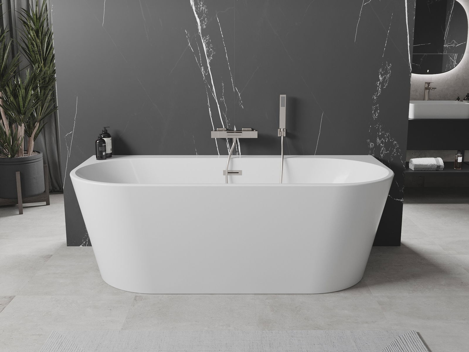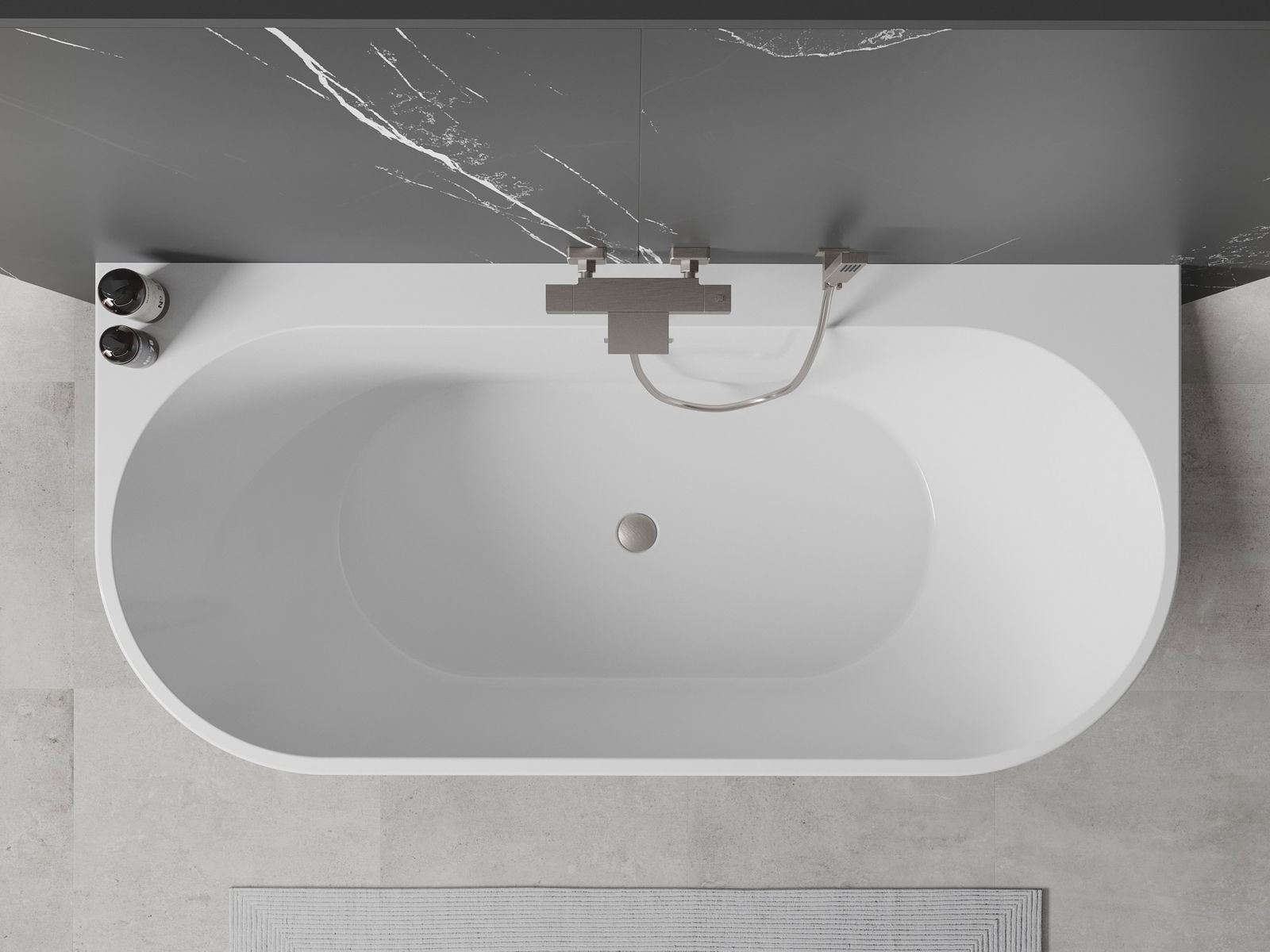 Vana na jedné straně má široký okraj, který tvoří praktickou polici. Umožňuje pohodlné umístění mýdla, kosmetiky nebo jiných koupelnových doplňků na dosah ruky, což zajišťuje ještě větší pohodlí.
