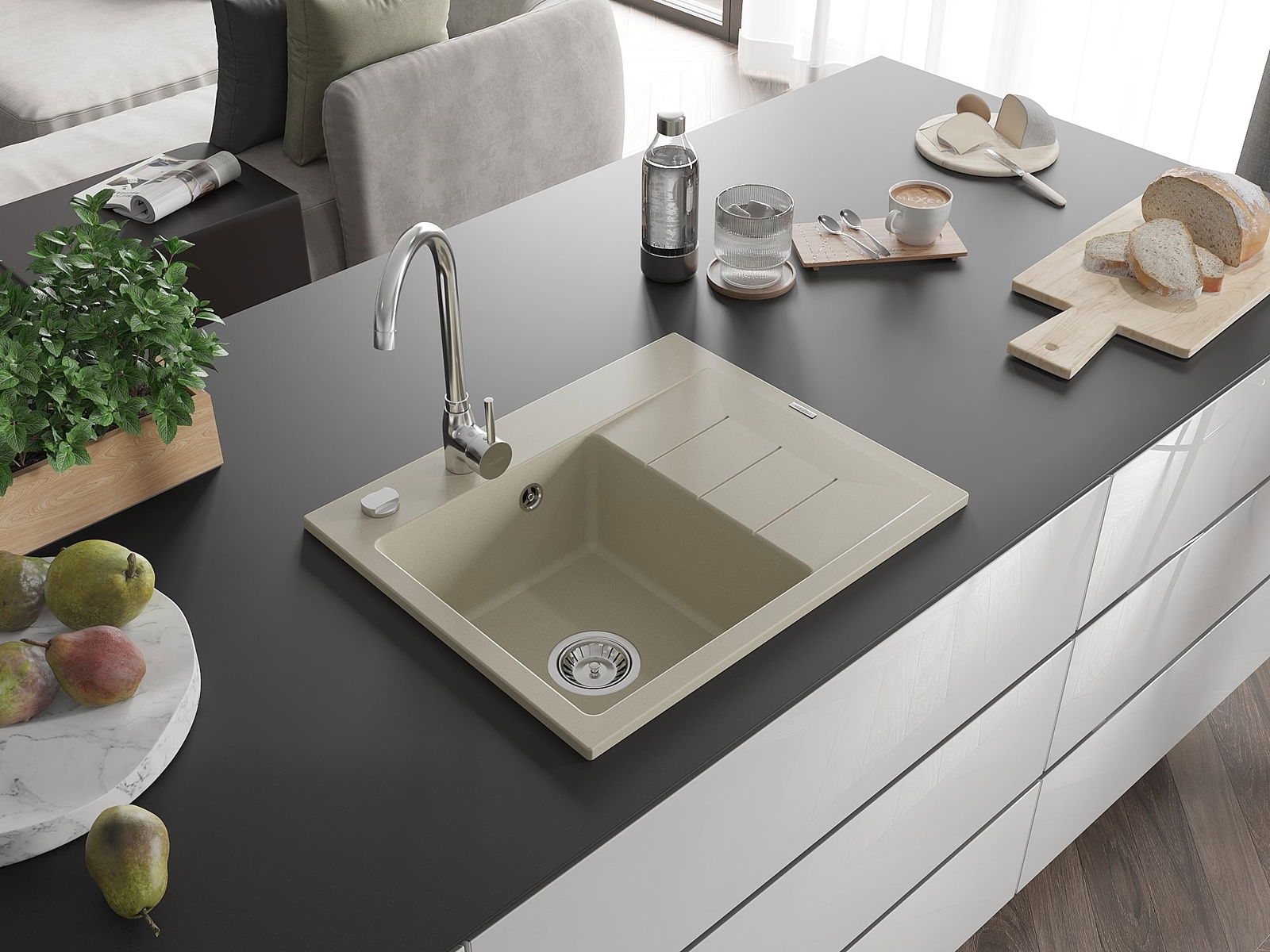 Dřez byl vyroben z vysoce kvalitního granitu. Představuje elegantní a především praktický doplněk každé kuchyně, bez ohledu na její styl. Vysoká kvalita a trvanlivost granitu zajišťují dlouholeté používání.