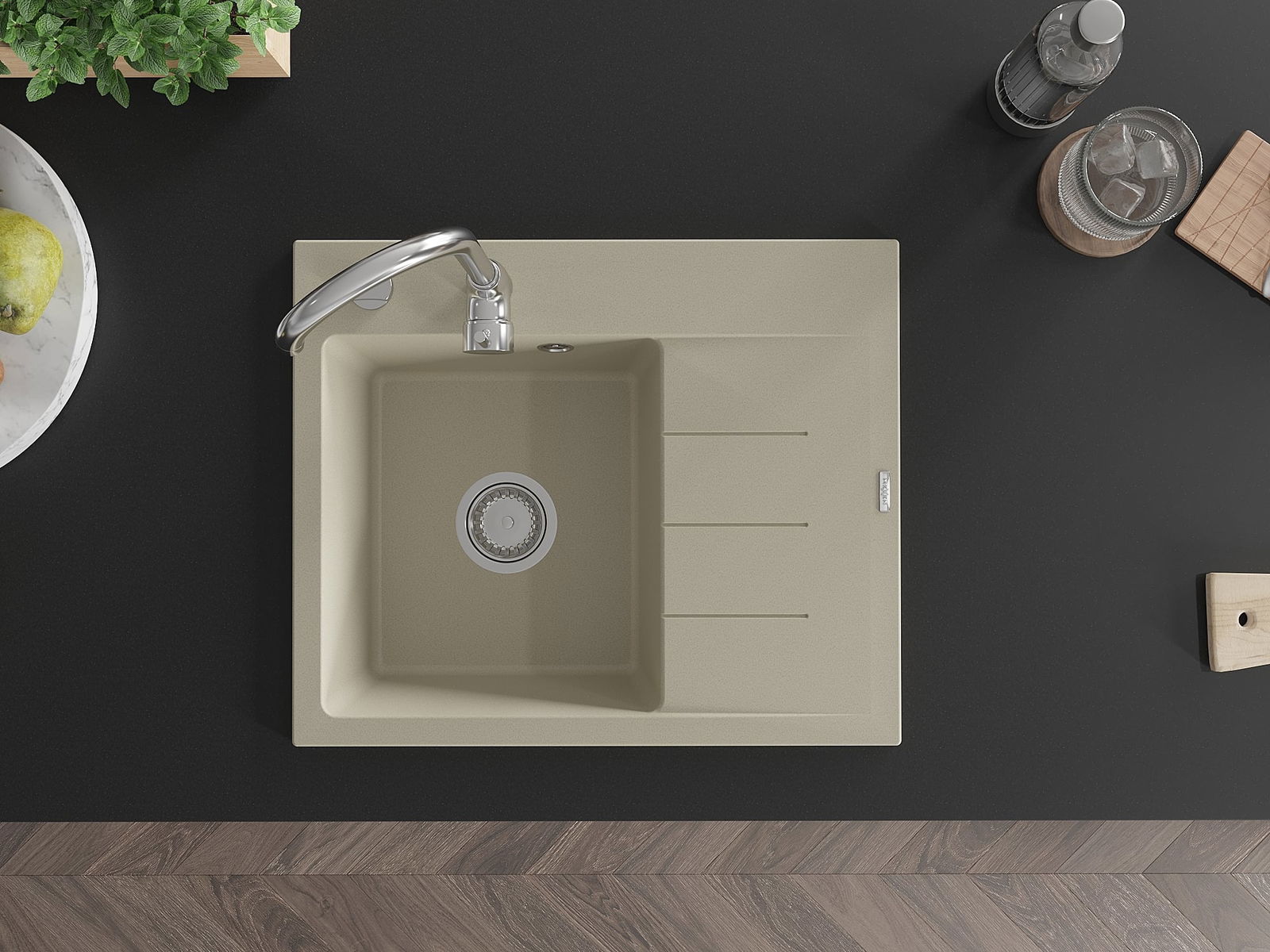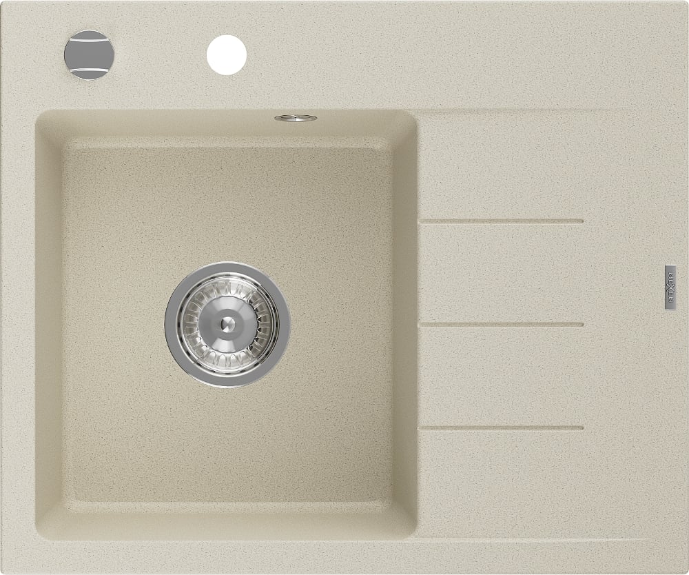 Mexen Ben granitový dřez 1-komorový s odkapávačem, levý 600 x 500 mm, béžový, sifon chrom - 6522605000-69