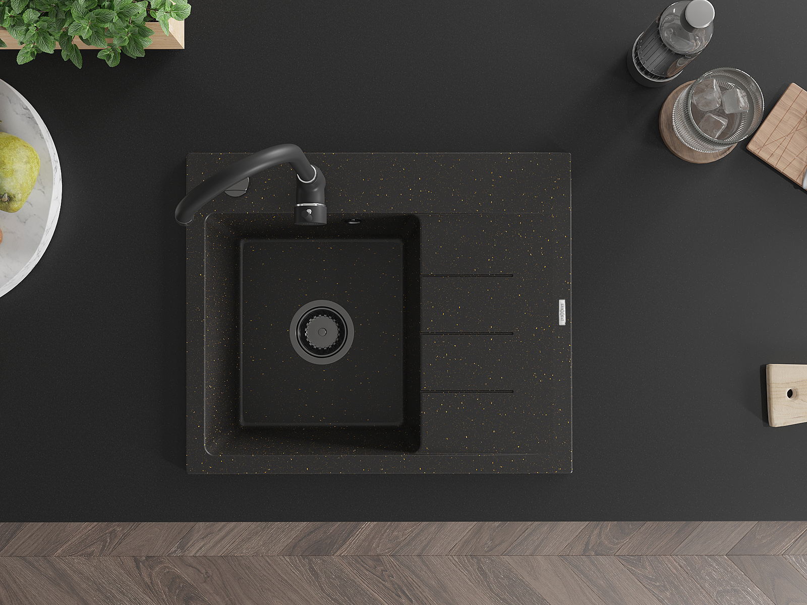 Povrch dřezu je velmi dobře vytvrzený, vyznačuje se výjimečnou odolností proti mechanickému poškození a poškrábání. Trvanlivý materiál umožňuje užívat si dobrý vzhled dřezu po mnoho let používání.