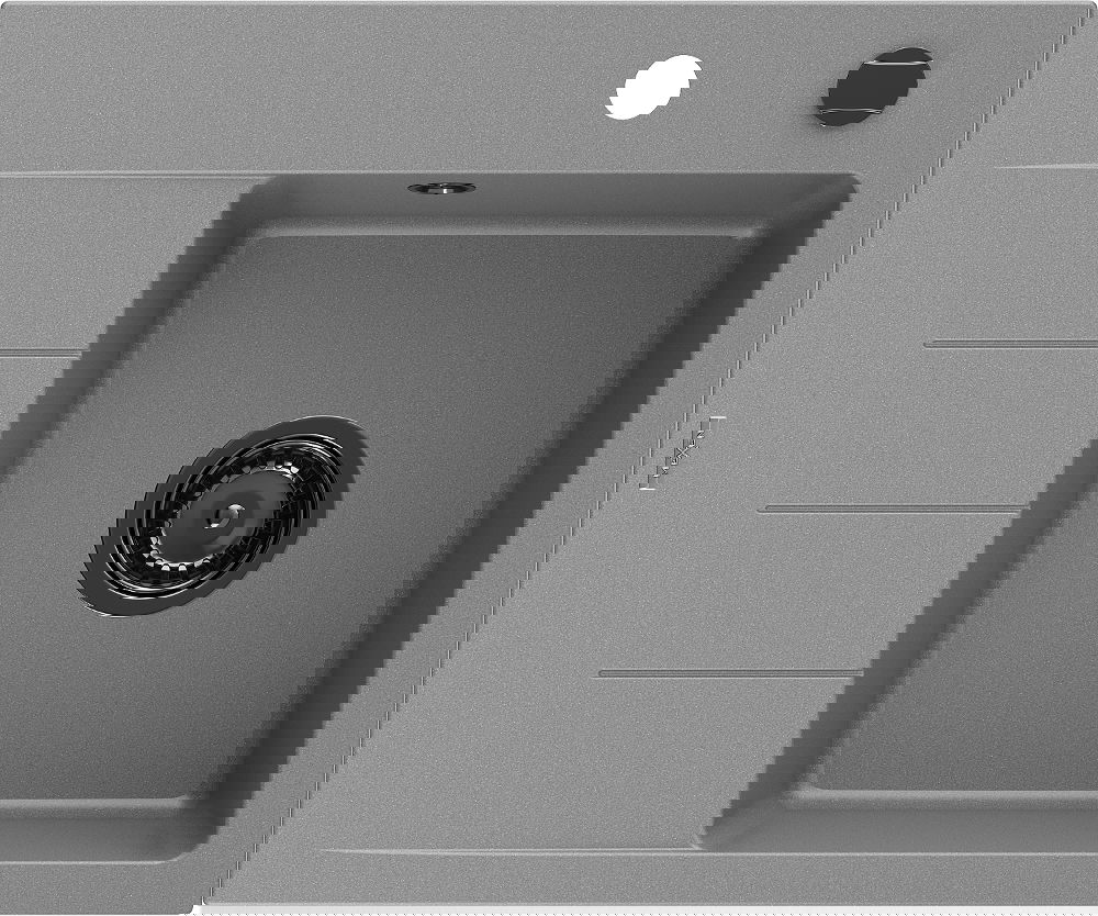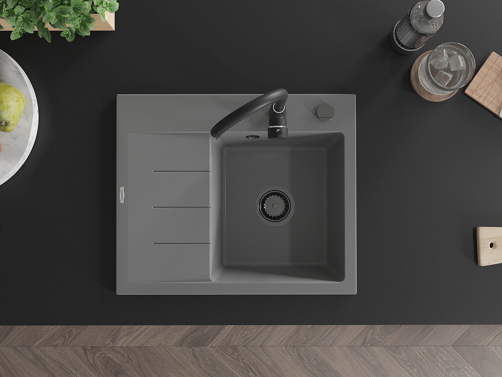 Mexen Ben granitový dřez s 1 komorou a odkapávačem, pravý 600 x 500 mm, šedý, černý sifon - 6523605000-71-B