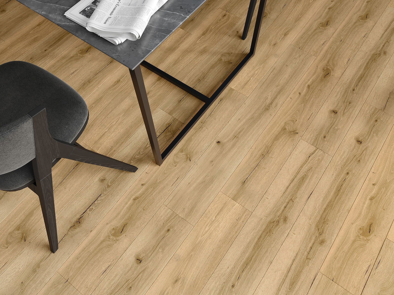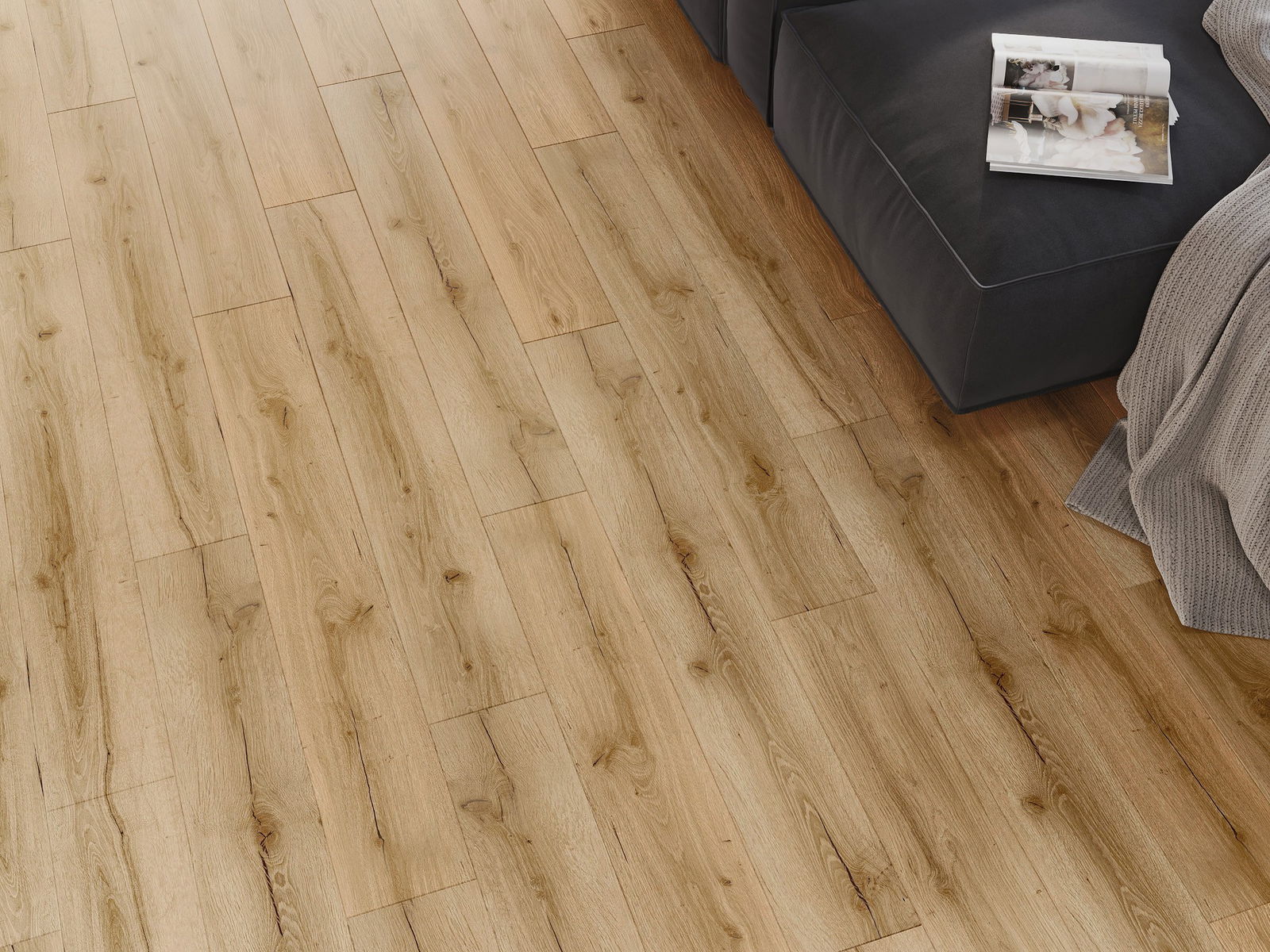 Panely mají 4strannou spáru - každá strana byla vyfrézována tak, aby po položení vzniklo spojení ve tvaru písmene V. Tento design způsobuje, že podlaha získává výraznější strukturu, což jí dodává hloubku a estetický charakter. Tento efekt je zvláště ceněn v moderních aranžmá, kde detaily zdůrazňují jedinečný vzhled interiéru.