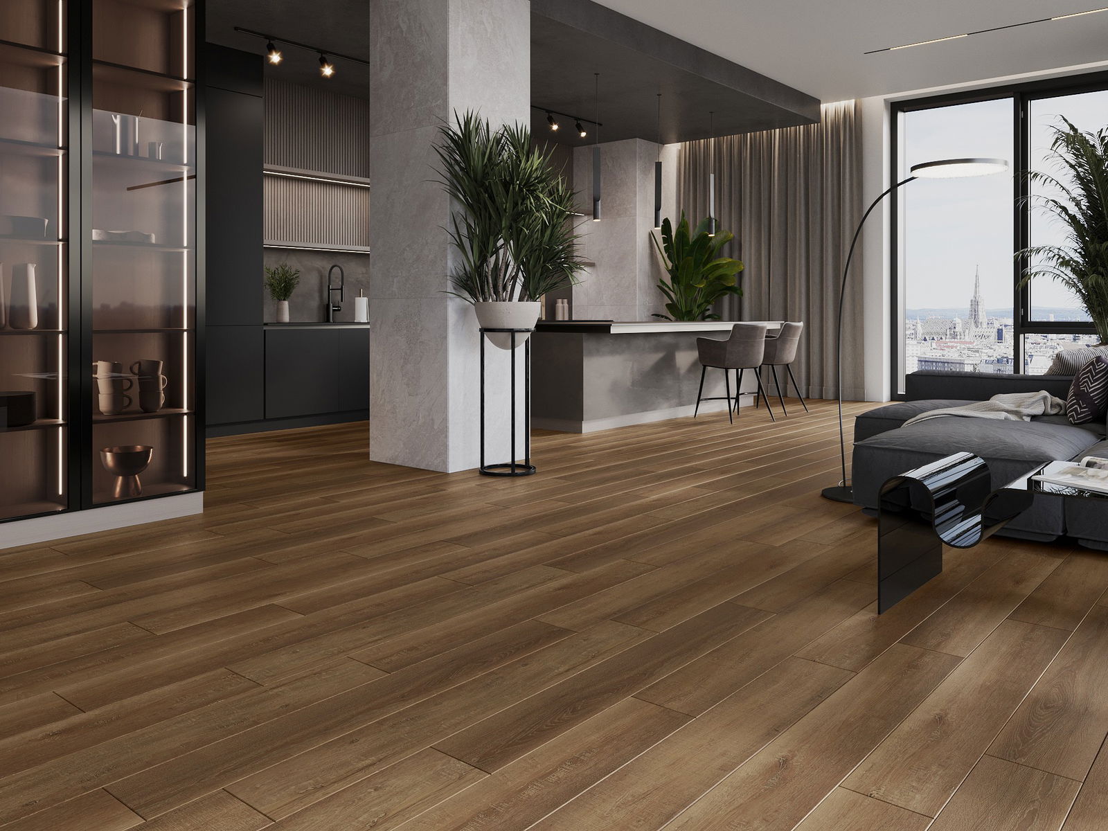 Panely mají 4strannou spáru - každá strana byla vyfrézována tak, aby po položení vzniklo spojení ve tvaru písmene V. Tento design způsobuje, že podlaha získává výraznější strukturu, což jí dodává hloubku a estetický charakter. Tento efekt je zvláště ceněn v moderních aranžmá, kde detaily zdůrazňují jedinečný vzhled interiéru.