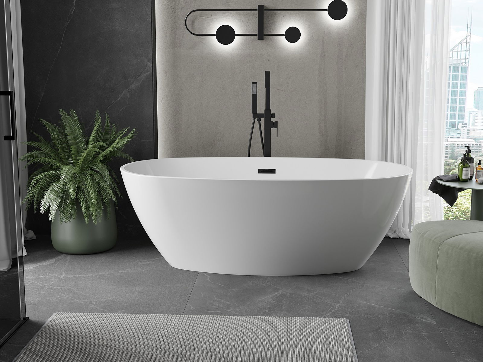 Mexen Eris volně stojící vana 180 x 95 cm, bílá, černý přepad - 53441809500-70
