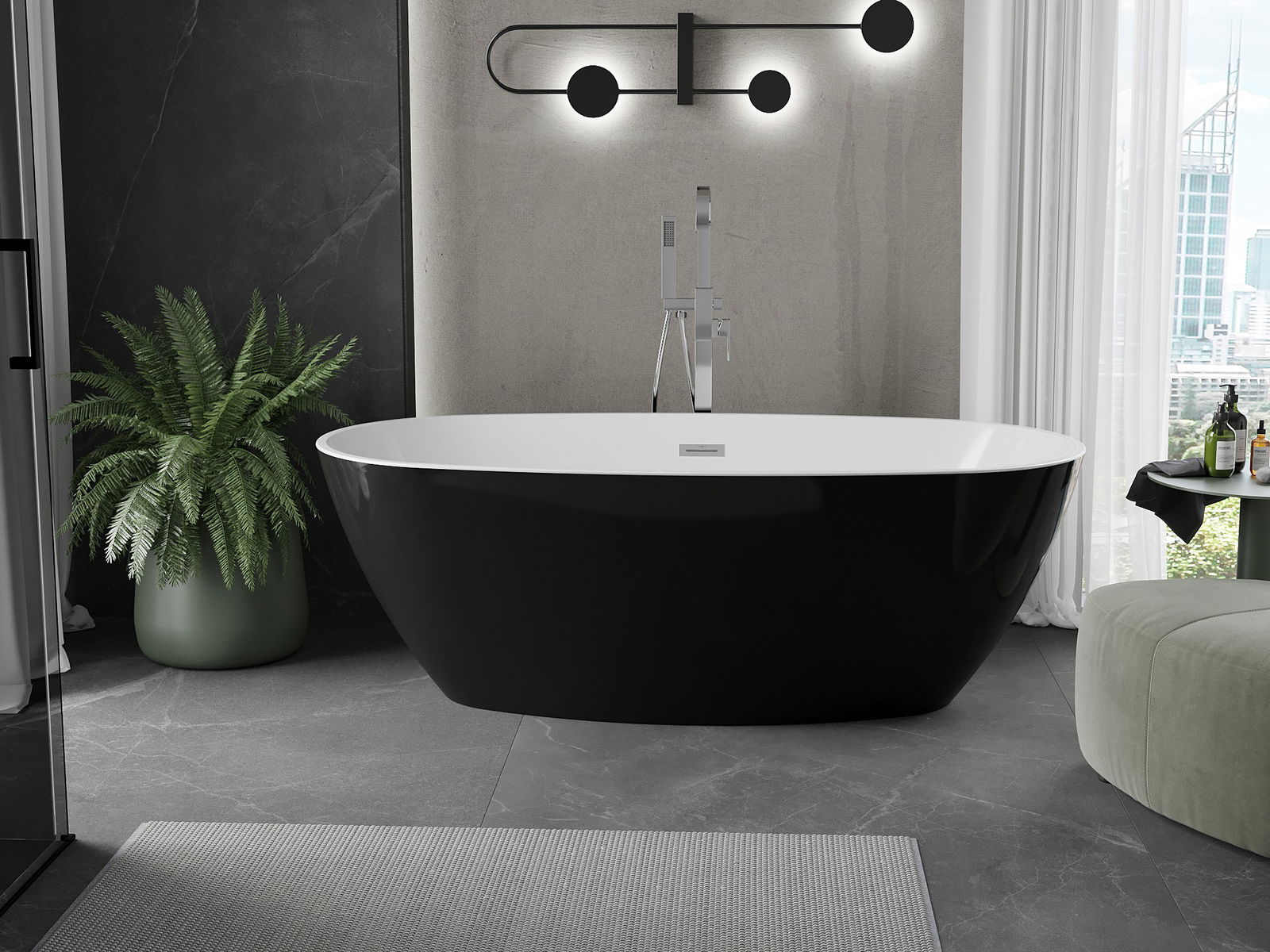 Volně stojící vana 180 x 95 cm je elegantním prvkem koupelny, spojujícím funkčnost s moderním designem. Vyrobena ze sanitárního akrylu, zajišťuje trvanlivost a snadnou údržbu čistoty. Její oválný tvar a povrchová úprava v barvách bílá/černá přinese svěžest do každé instalace. Má přepadový otvor a součástí balení je sifon. Navíc odolnost proti matování a UV záření zajišťuje, že vana si udrží atraktivní vzhled po dlouhá léta.