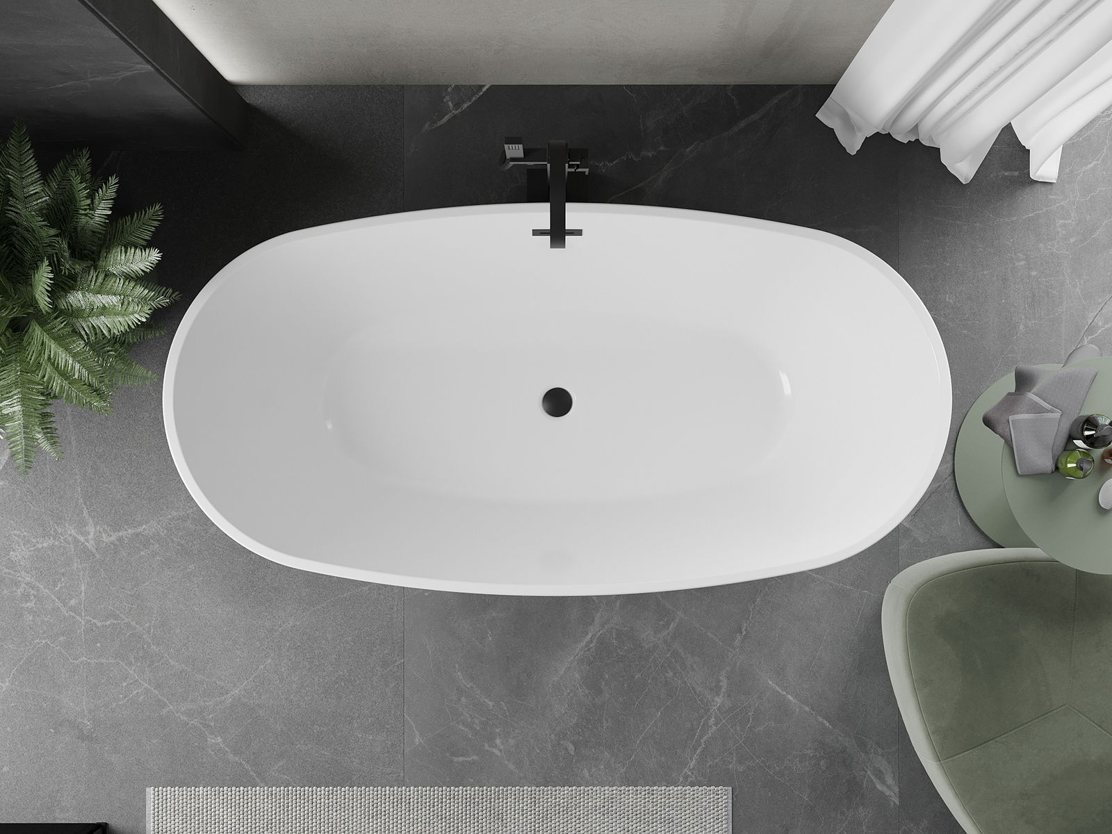 Samostatně stojící vana 180 x 95 cm v elegantní kombinaci bílého a černého akrylu je stylovým prvkem každé koupelny. Její oválný tvar a lesklý povrch zdůrazňují moderní charakter. Disponuje přepadovým otvorem a sifonem v balení, což zajišťuje pohodlí při každodenním používání. Odolná proti matování a UV záření, bude těšit oko po léta. Montáž je navíc snadná díky samostatně stojící konstrukci.