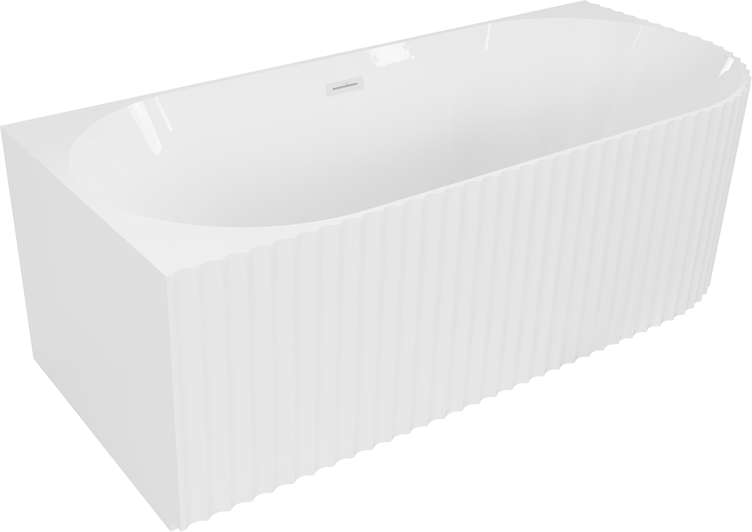 Mexen Gia volně stojící rohová rýhovaná levá 150 x 75 cm, bílý lesk, bílý přepad - 52701507500L-20