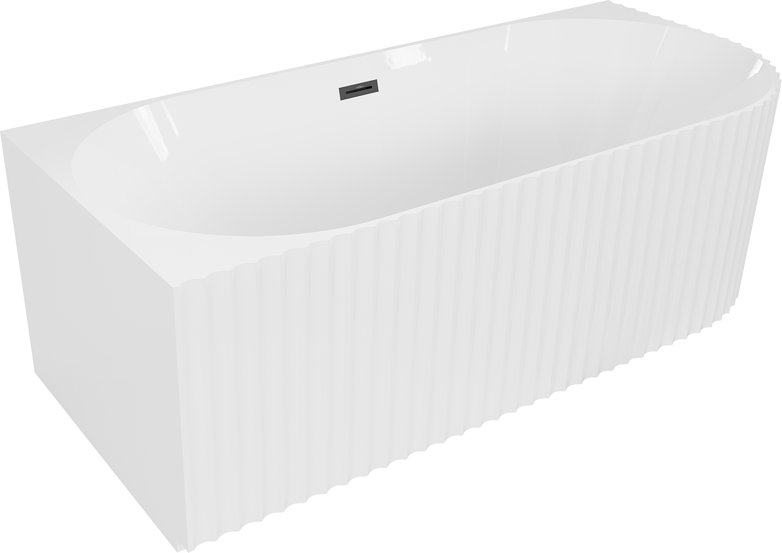 Mexen Gia volně stojící rohová vana s drážkami, levá 150 x 75 cm, bílý lesk, černý přepad - 52701507500L-70