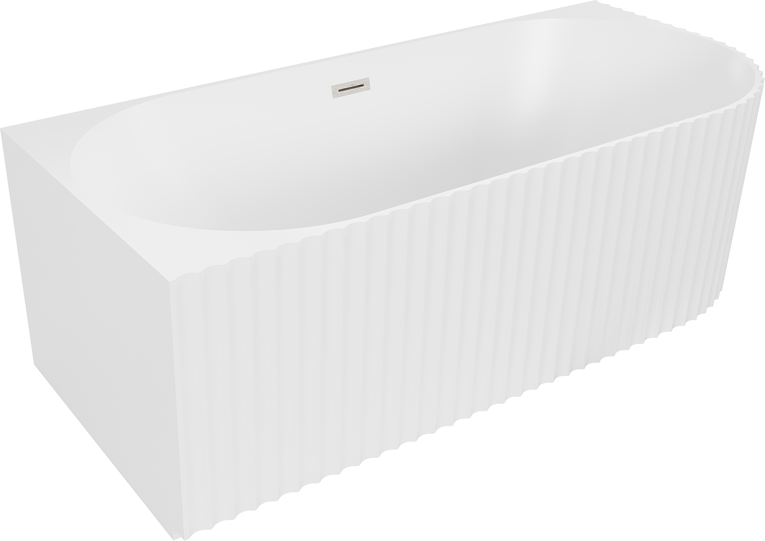 Mexen Gia volně stojící rohová žebrovaná vana levá 150 x 75 cm, bílá mat, přepad kartáčovaný nikl - 52701507501L-97