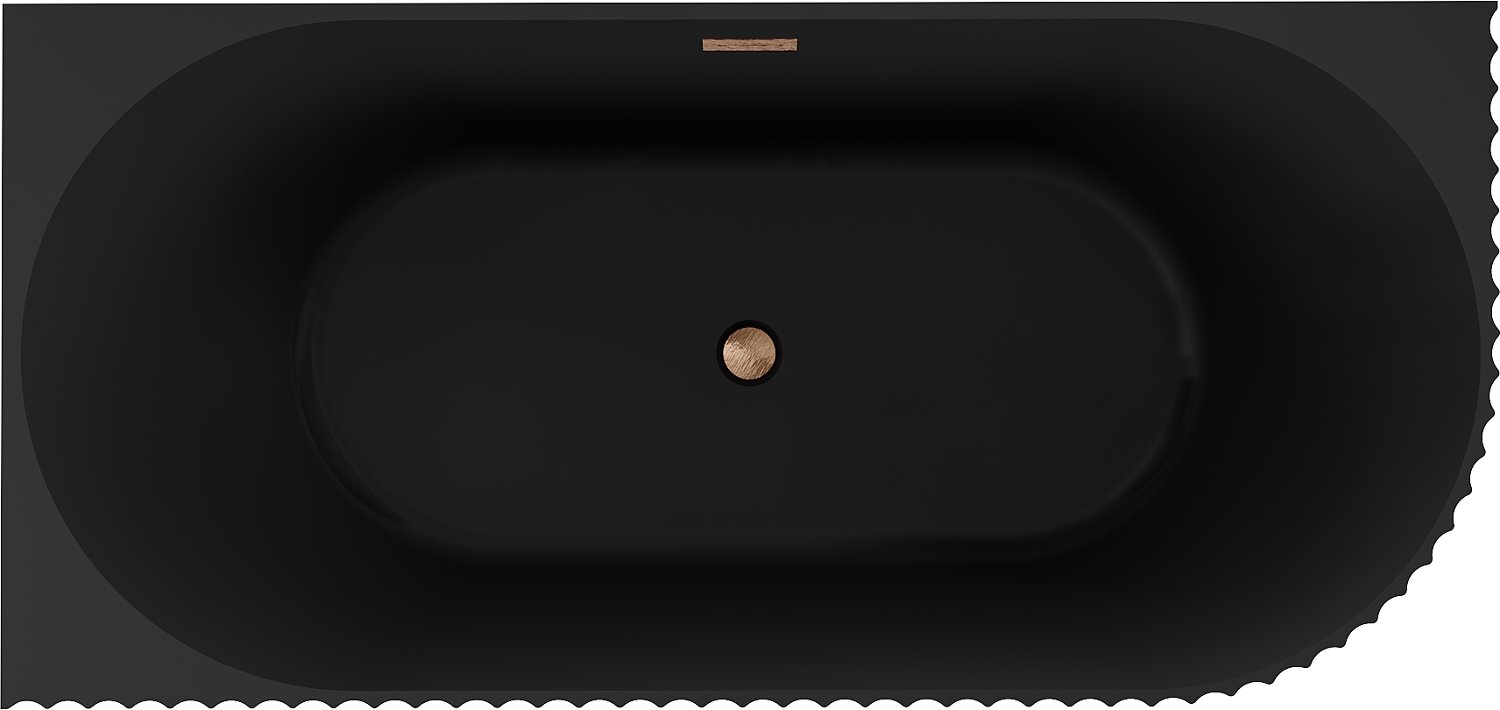 Mexen Gia volně stojící rohová vana s drážkami levá 150 x 75 cm, černá mat, přepad broušená měď - 52701507571L-65