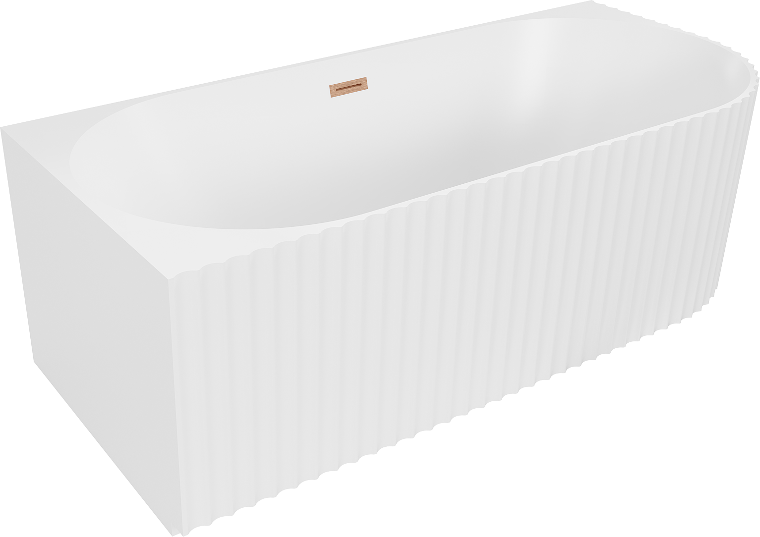 Mexen Gia volně stojící rohová vana vroubkovaná levá 170 x 80 cm, bílá mat, přepad kartáčovaná měď - 52701708001L-65