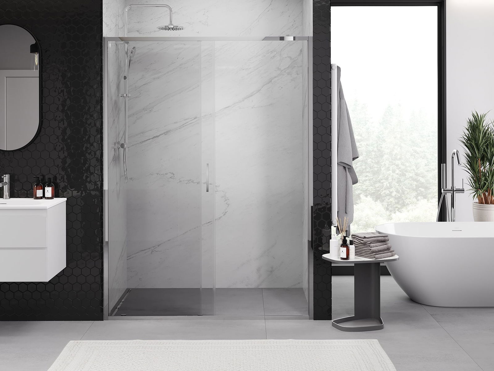 Díky použití univerzálního montážního systému mohou být sprchové dveře namontovány na pravé nebo levé straně, podle potřeby. Díky tomu můžete snadno navrhnout sprchu přizpůsobenou prostoru koupelny.