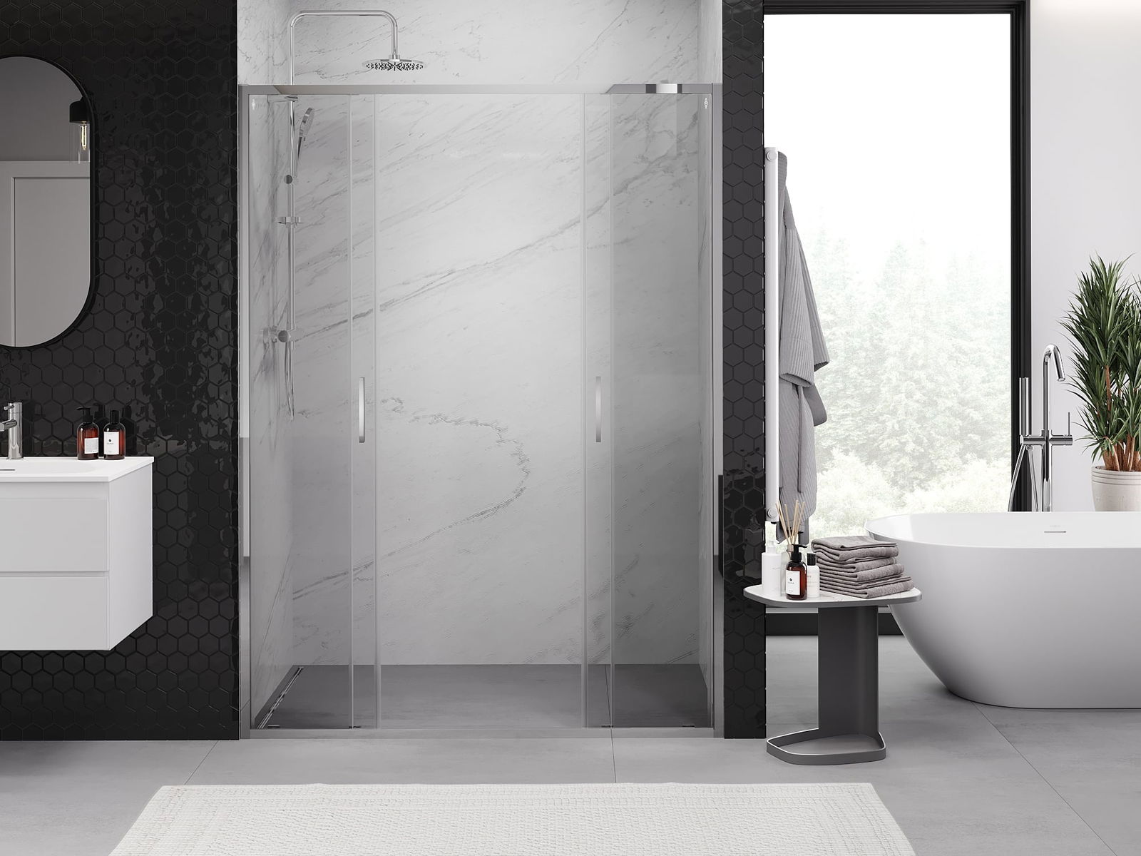 Díky použití univerzálního montážního systému mohou být sprchové dveře namontovány na pravé nebo levé straně, podle potřeby. Díky tomu můžete snadno navrhnout sprchu přizpůsobenou prostoru koupelny.