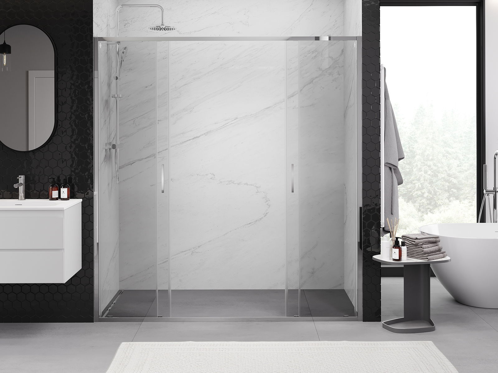 Díky použití univerzálního montážního systému mohou být sprchové dveře namontovány na pravé nebo levé straně, podle potřeby. Díky tomu můžete snadno navrhnout sprchu přizpůsobenou prostoru koupelny.