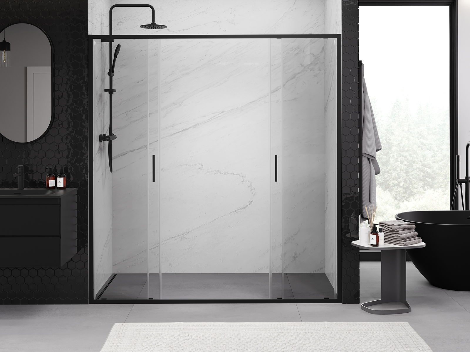 Mexen Exo dvojité posuvné sprchové dveře 200 cm, transparentní, černé - 8152-200-000-70-00