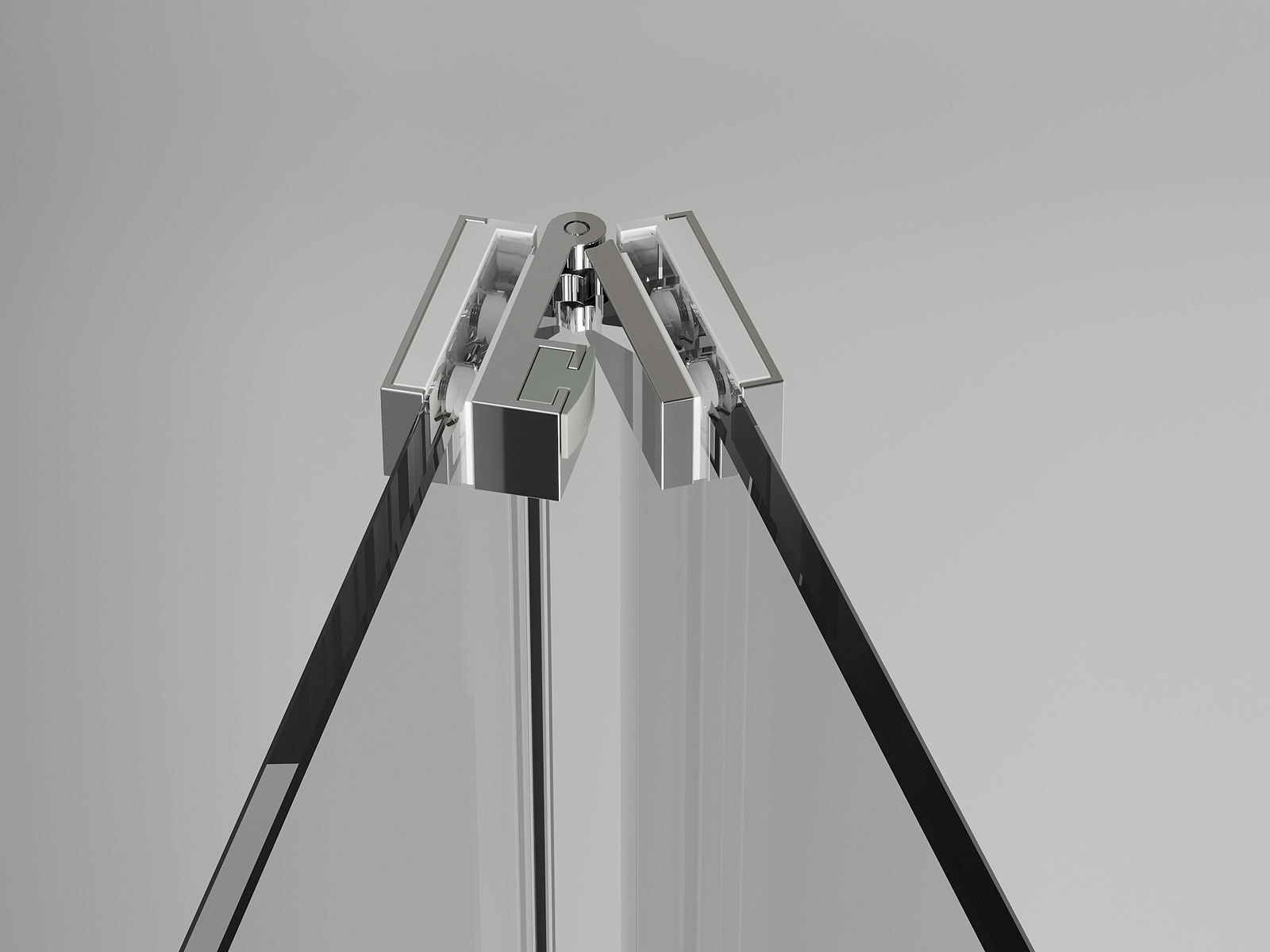 Možnost skládání dveří, jak dovnitř, tak ven, umožňuje získat více prostoru při nepoužívání sprchy. Je to ideální řešení pro menší koupelny, maximálně využívající dostupný prostor.