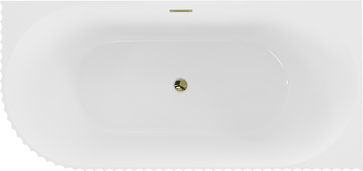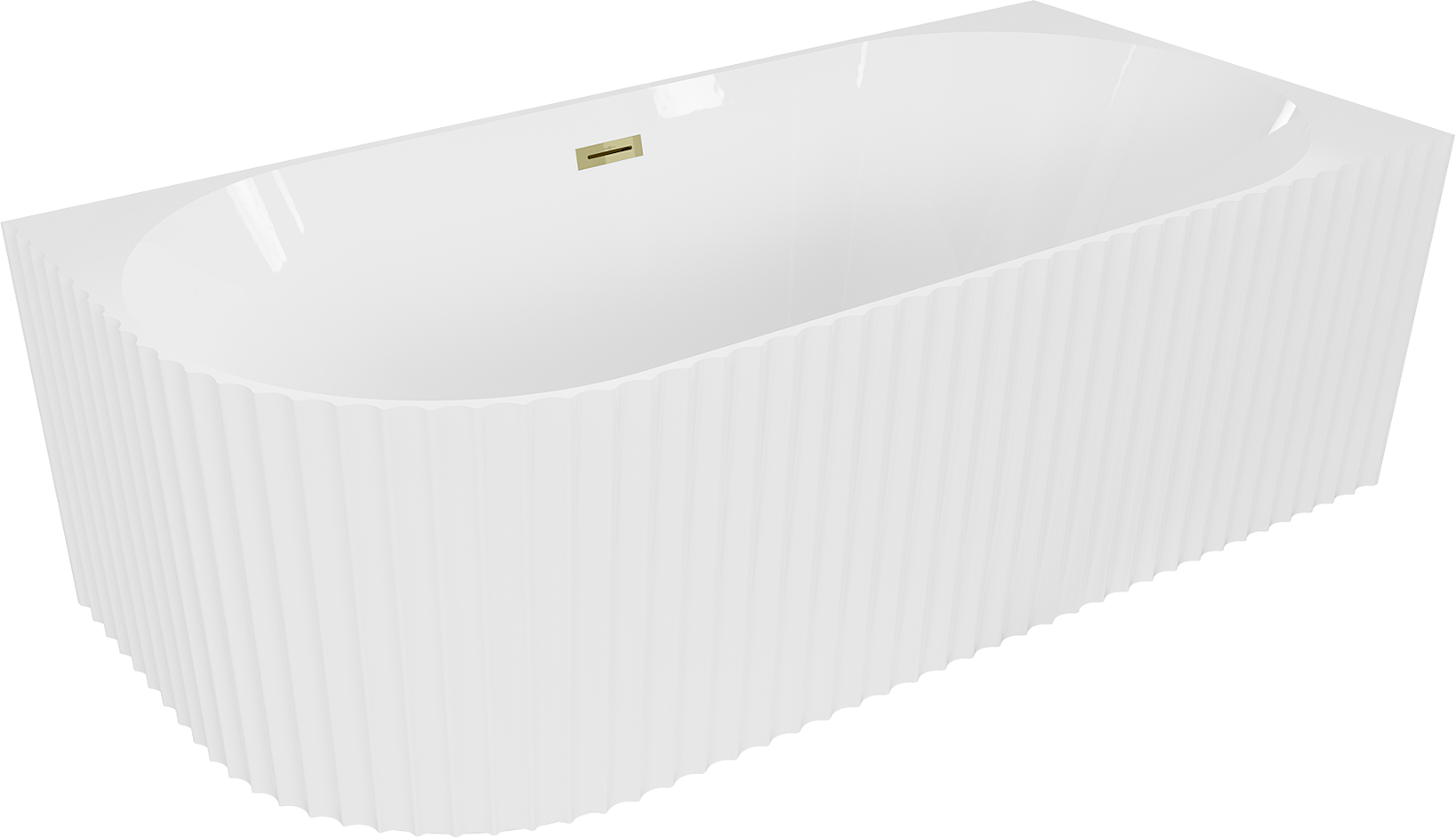 Mexen Gia volně stojící rohová rýhovaná pravá vana 150 x 75 cm, bílý lesk, zlatý přepad - 52701507500P-50