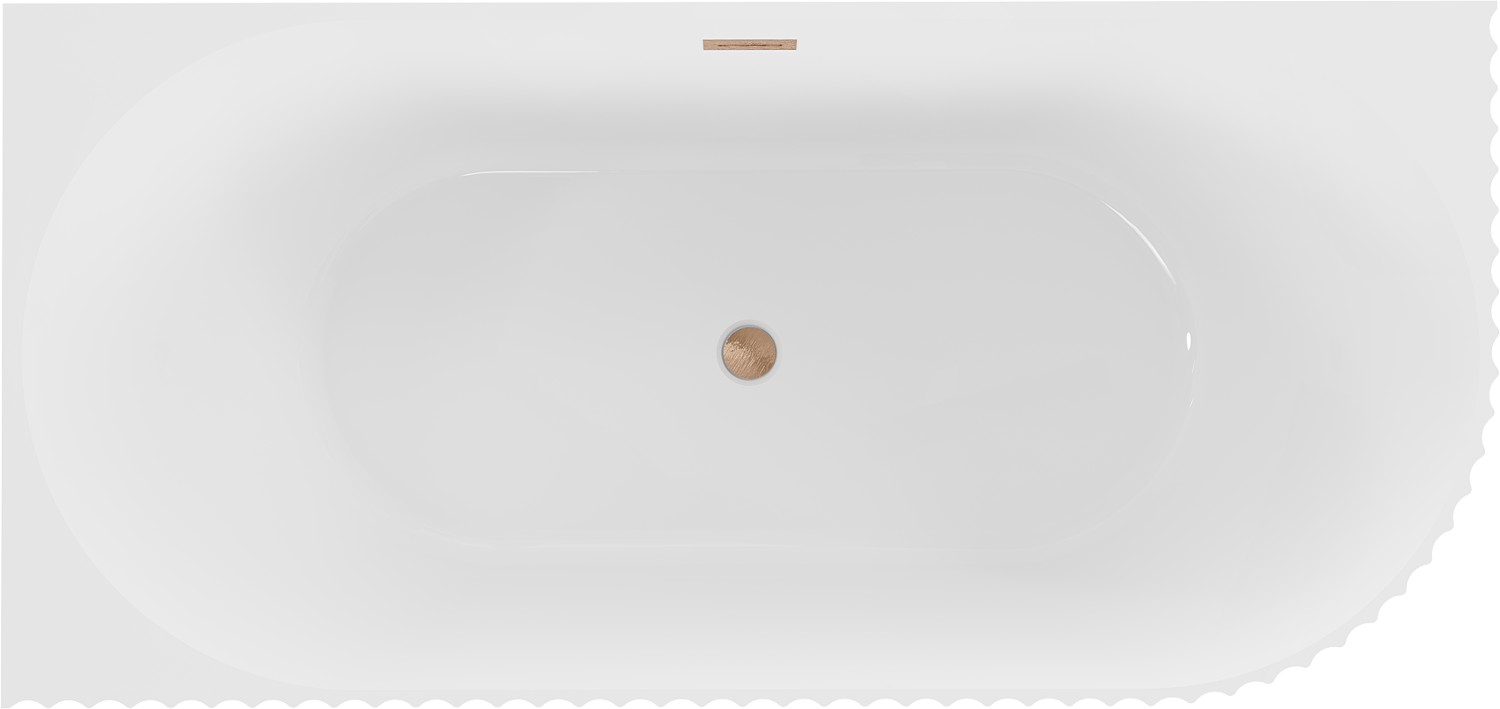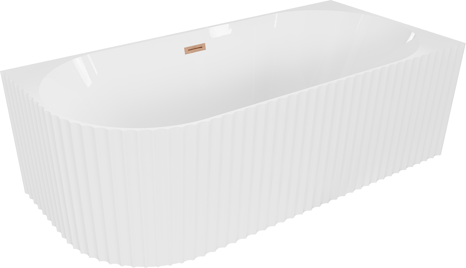 Mexen Gia volně stojící rohová vana drážkovaná pravá 150 x 75 cm, bílý lesk, přepad kartáčovaná měď - 52701507500P-65