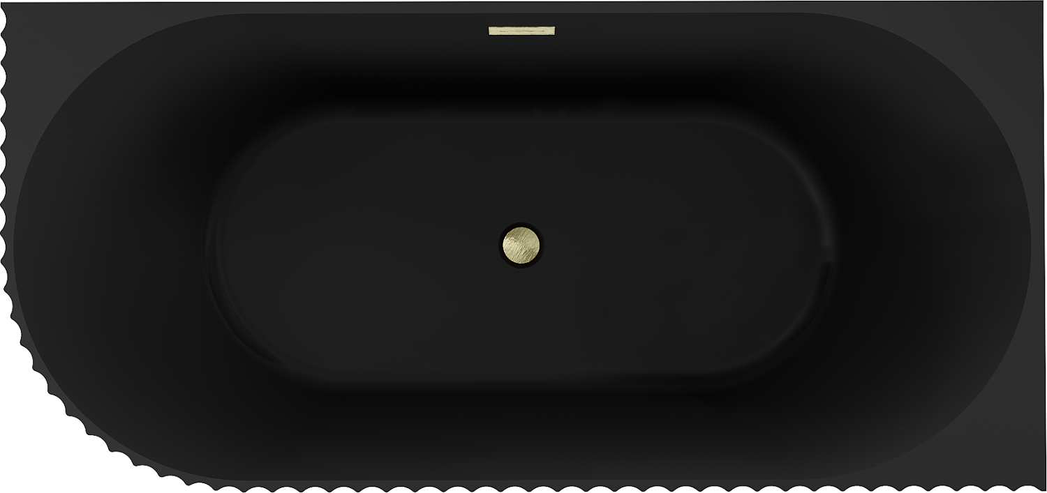 Mexen Gia volně stojící rohová vana rýhovaná pravá 150 x 75 cm, černá mat, přepad zlatý kartáčovaný - 52701507571P-55
