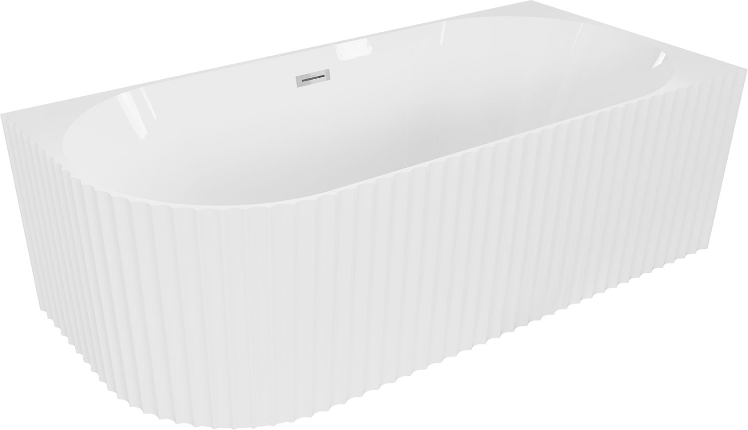 Mexen Gia volně stojící rohová rýhovaná pravá vana 170 x 80 cm, bílá lesk, přeliv chrom - 52701708000P-01