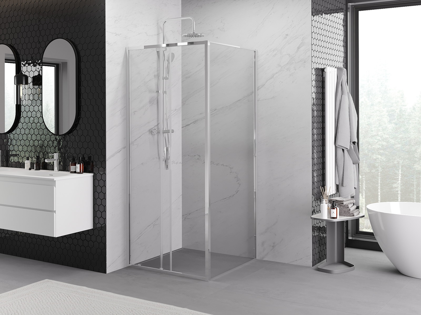 Praktická a pohodlná rukojeť je vyrobena z odolného a trvanlivého kovu. Moderní tvar ve spojení s povrchovou úpravou, která ladí s barvou profilů, dodává celku moderní a stylový vzhled, zdůrazňující estetiku každé koupelny.