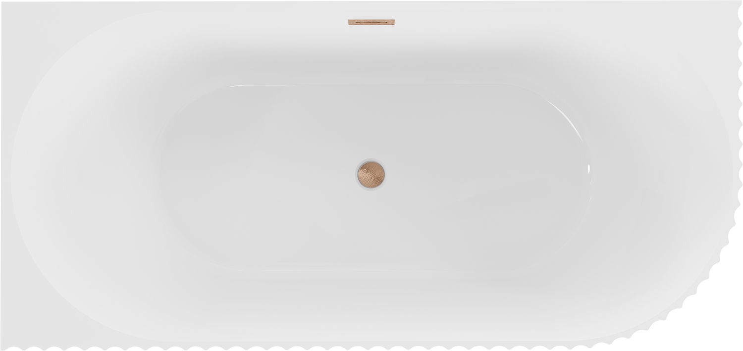 Mexen Gia volně stojící rohová vana rýhovaná pravá 170 x 80 cm, bílý lesk, přepad kartáčovaná měď - 52701708000P-65