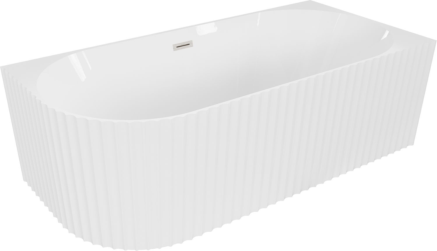 Mexen Gia volně stojící rohová vana rýhovaná pravá 170 x 80 cm, bílý lesk, přepad kartáčovaný nikl - 52701708000P-97