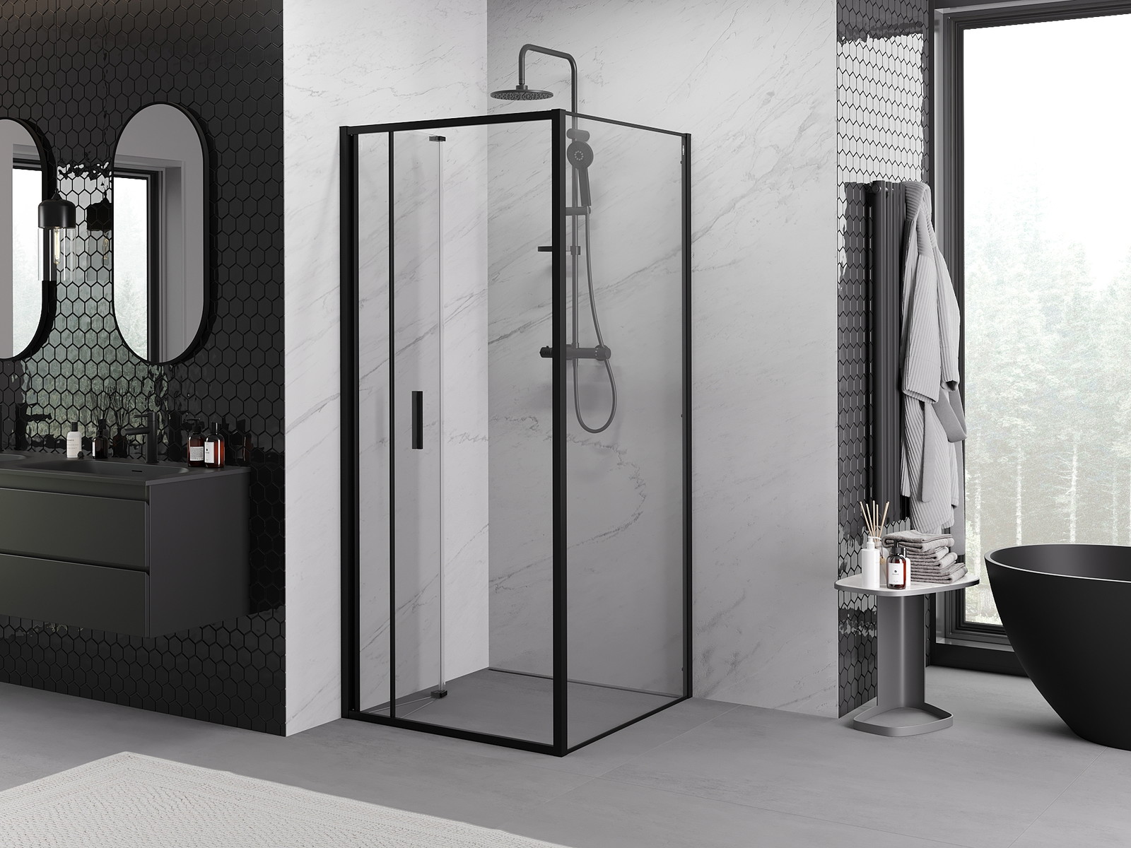 Mexen Rio čtvercová sprchová kabina 90 x 90 cm, transparentní, černá - 860-090-090-70-00