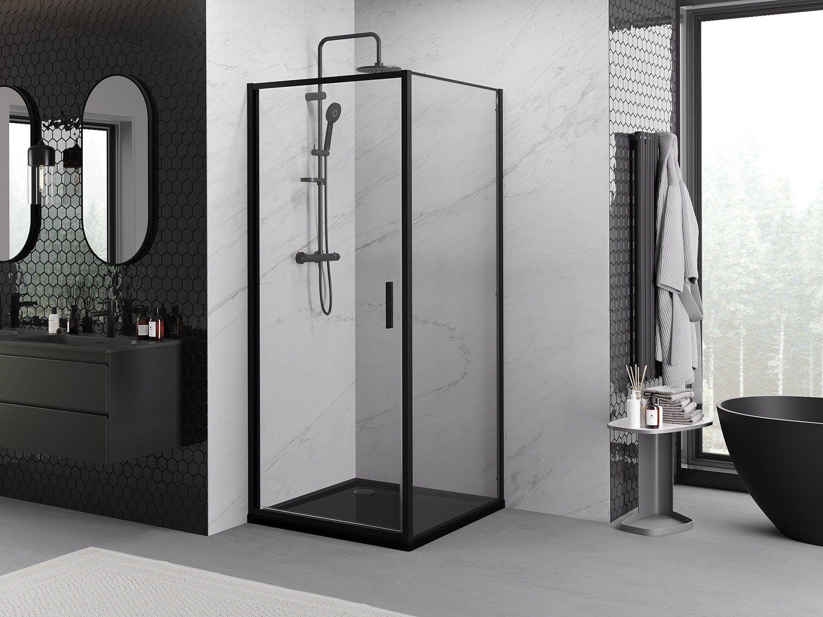 Mexen Exo sprchový kout s otevíracími dveřmi 80 x 80 cm, transparentní, černý - 817-080-080-70-00