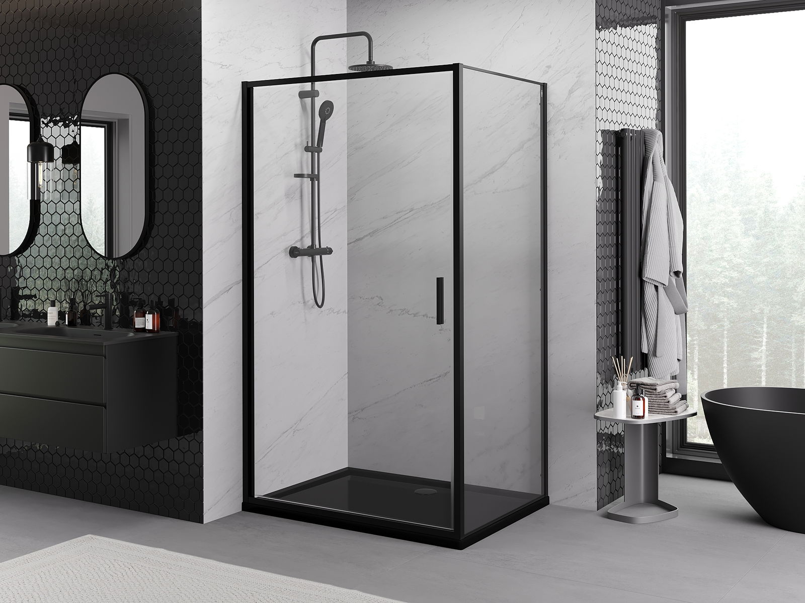 Mexen Rio čtvercová sprchová kabina 90 x 90 cm, transparentní, černá - 860-090-090-70-00